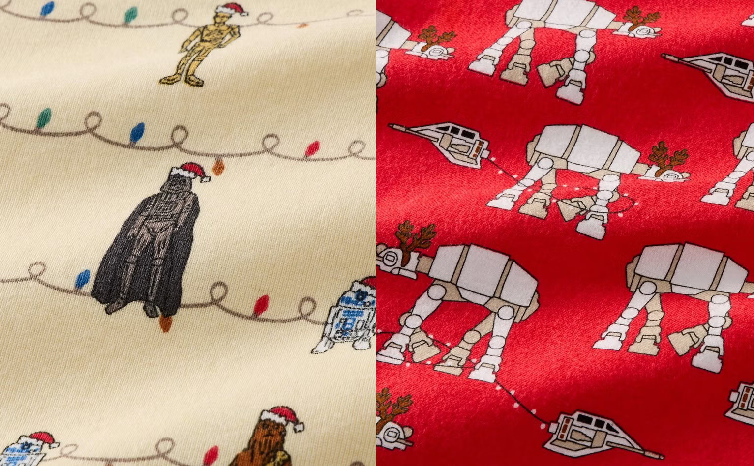 There are multiple Star Wars/holiday-themed pajama sets on sale on the Hanna Anderson site. From an AT-AT disguised as a reindeer to many iconic characters serving as Christmas lights. All of them have a 50% discount and are available in sizes for all family members.