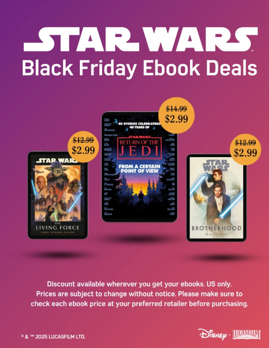 From a Certain Point of View, The Living Force and Brotherhood are on sale for just $2.99. As the image below shows, this is only on Ebook format. All of these titles have been out for a while, but they’re still worth reading if you haven’t.