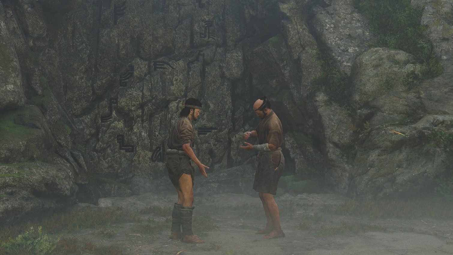 Kane and Kinu offer a strange object and a scroll with a riddle. These objects supposedly open the glyph door and now Naoe and Yasuke must figure out how to use it. You’ll gain the Riddle Scroll Beacon Trinket and Amulet for Naoe and Yasuke respectively.