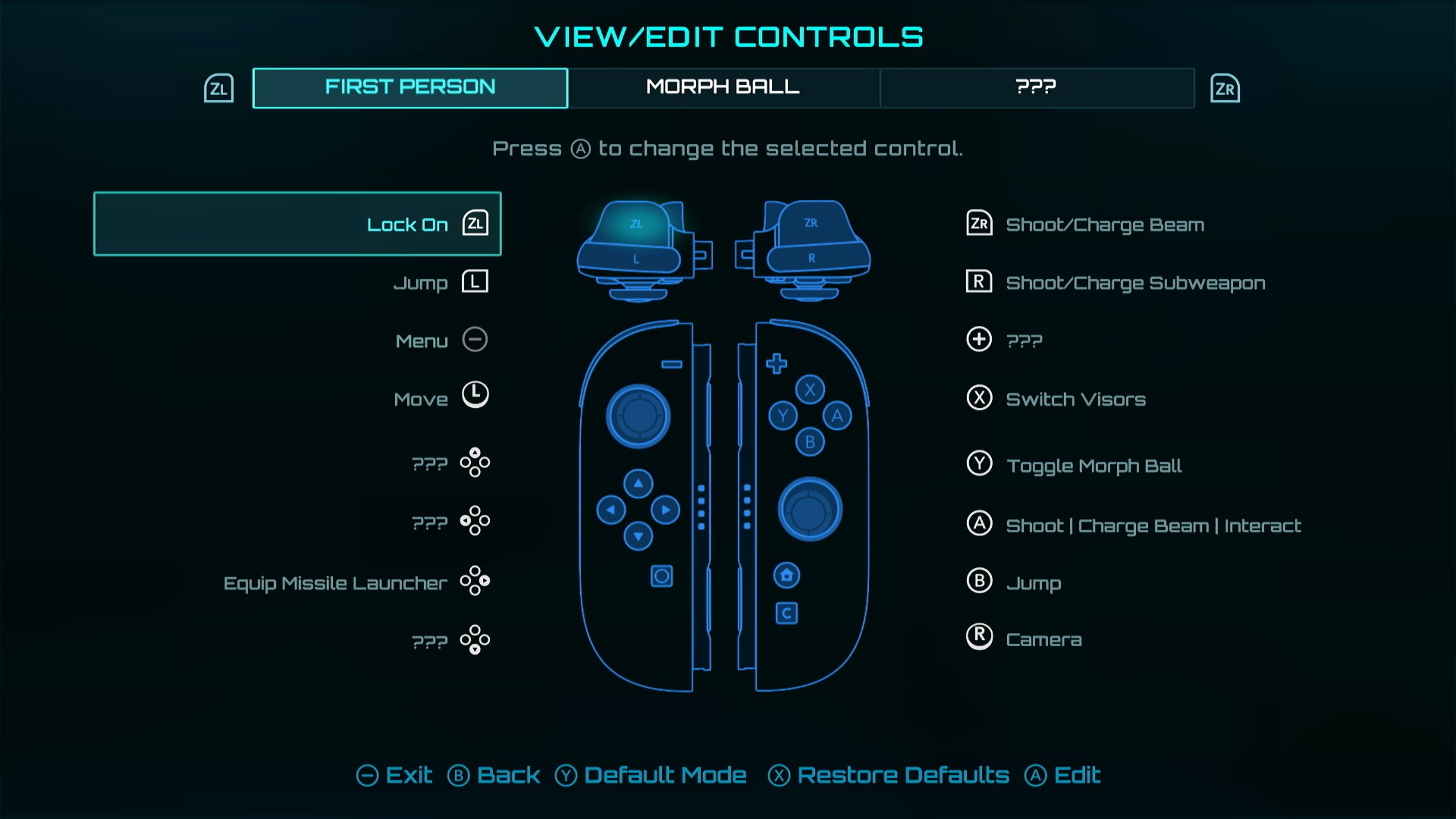 | Shoot/Charge Beam | ZR | Tap/Hold | Dual Stick First Person |