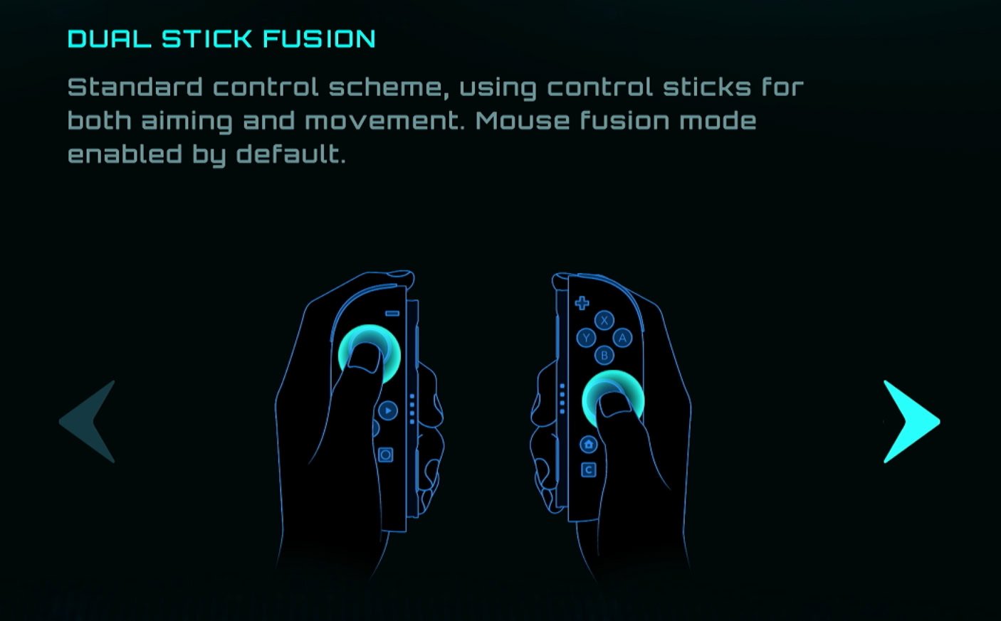 If you want a more immersive experience, the Pointer Fusion control scheme is for you! This offers motion controls similar to Metroid Prime 3: Corruption. You use your right Joy-Con to aim and turn around with gyro aiming.