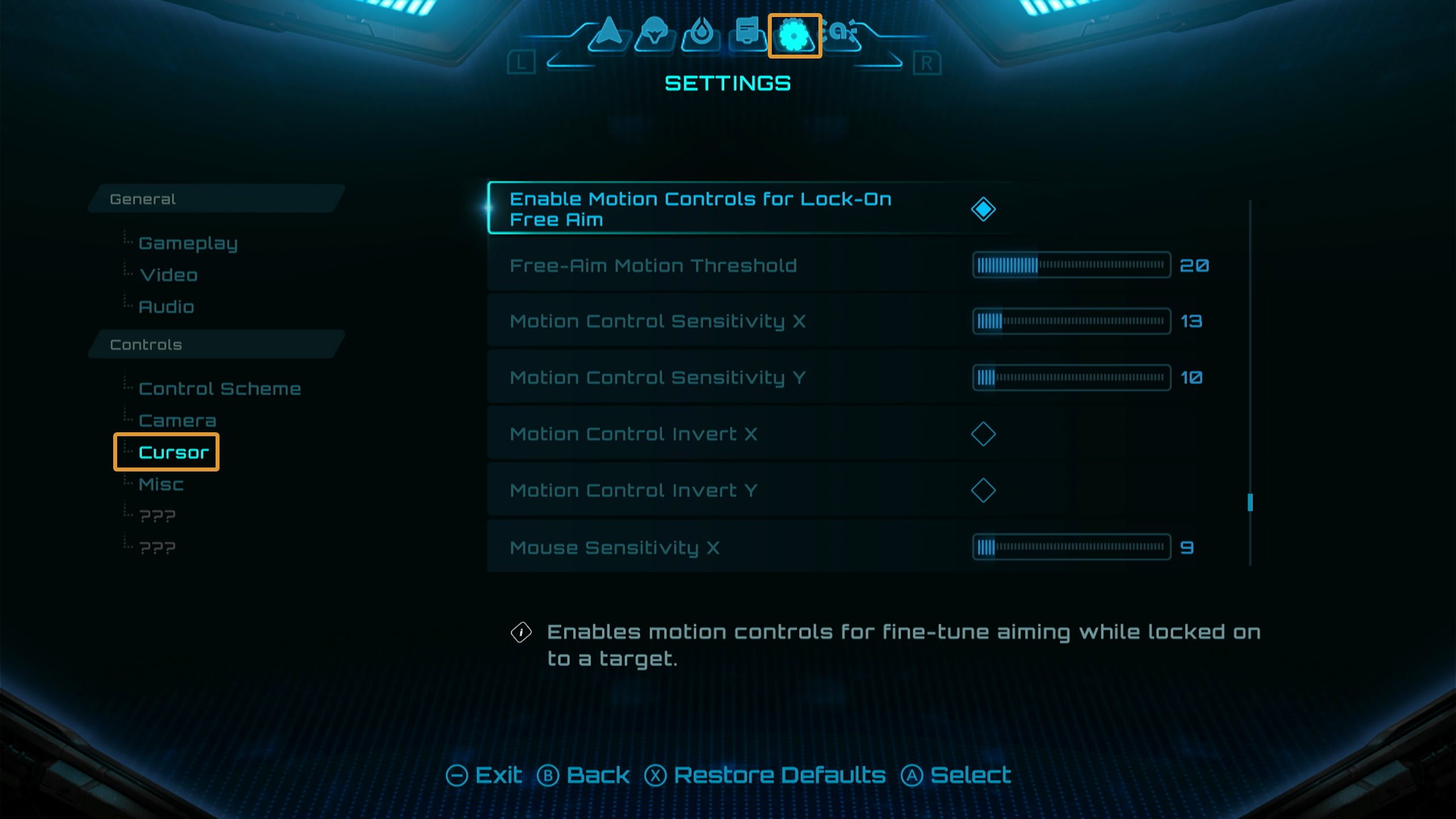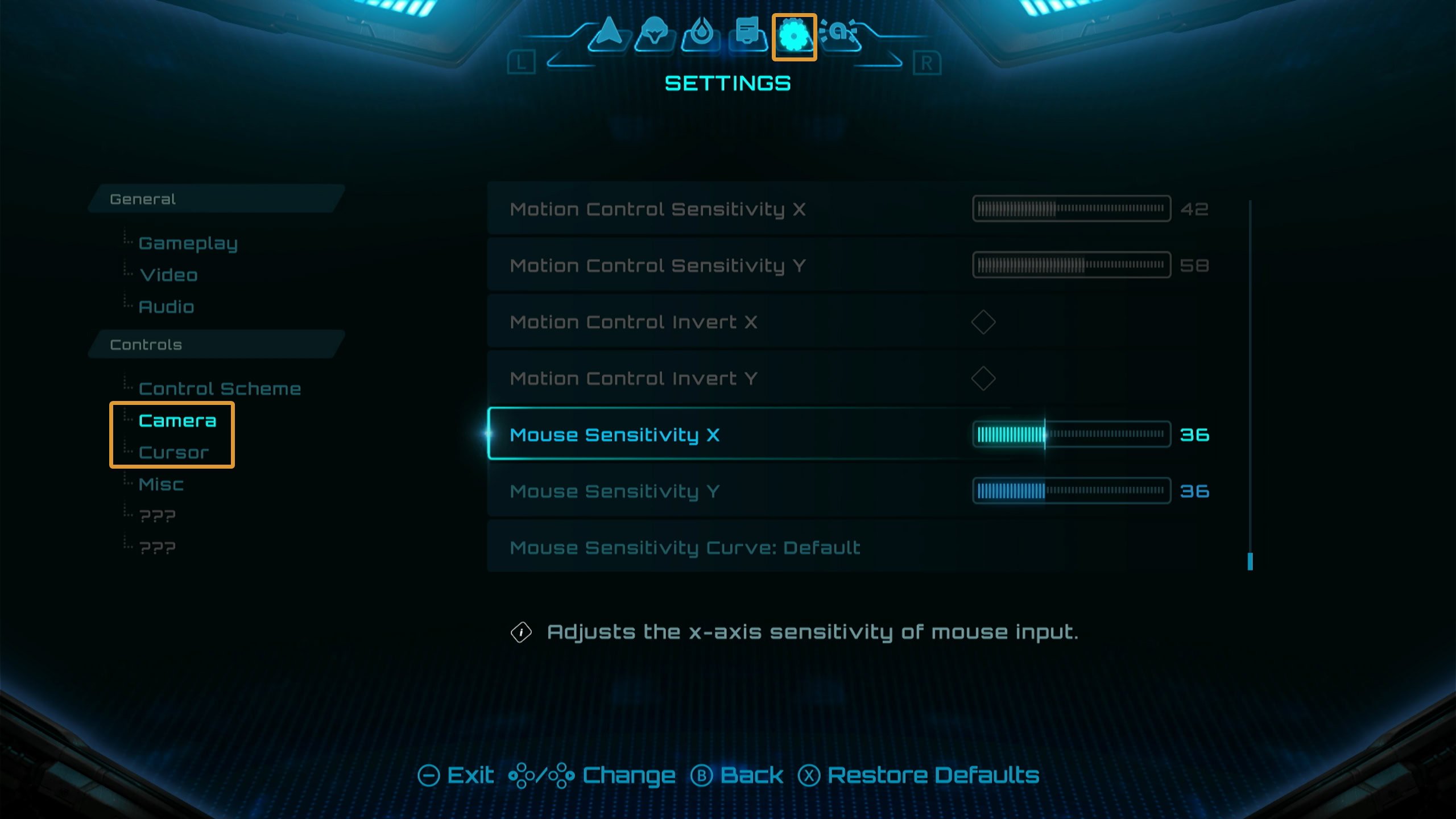 To adjust the Mouse Sensitivity, go to the Camera or Cursor Settings and adjust Motion Control Sensitivity X/Y to your liking. Camera Sensitivity is for general looking around, while Cursor Sensitivity is for when you’re locked onto a target.