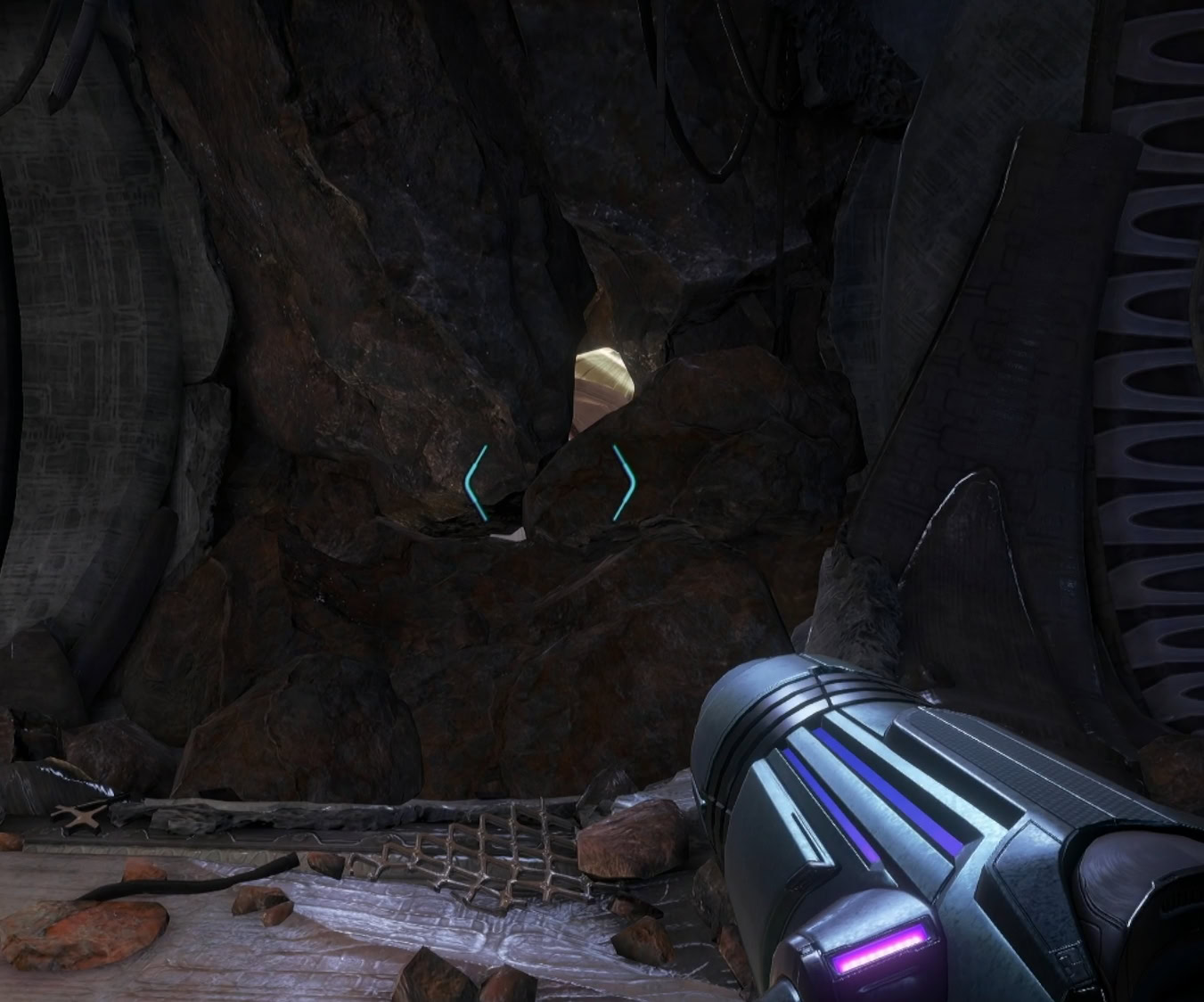 Jump down and blast open the tunnel with the metal grates, then Morph Ball through. Run down the large hallway, destroy the crates to the left that block another tunnel, and roll on through to reach the Volt Forge.