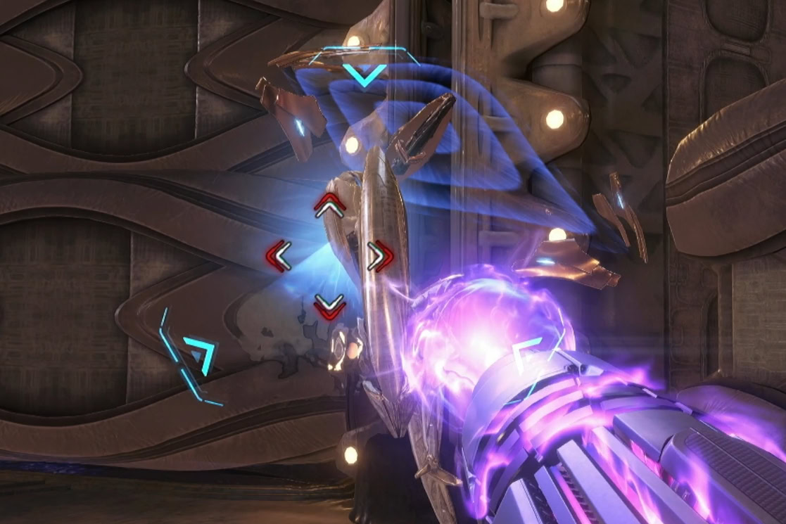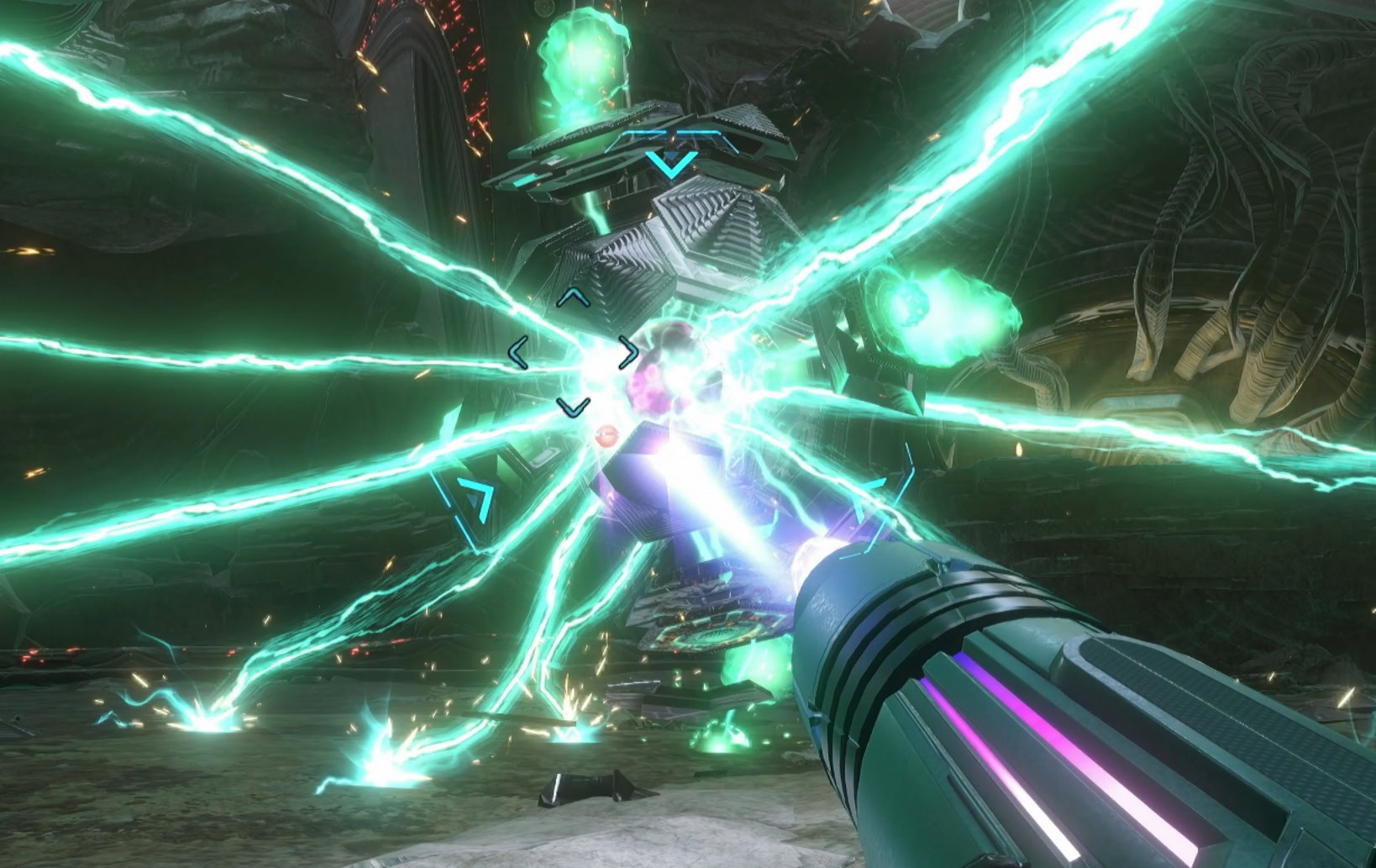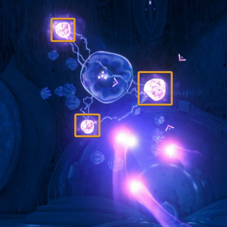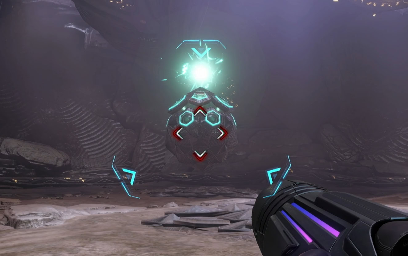 You’ll need to expose the organic core by destroying the panels that are currently lit up. Charge Shots can take out multiple panels, but they’ll also pull in the energy orbs toward you.