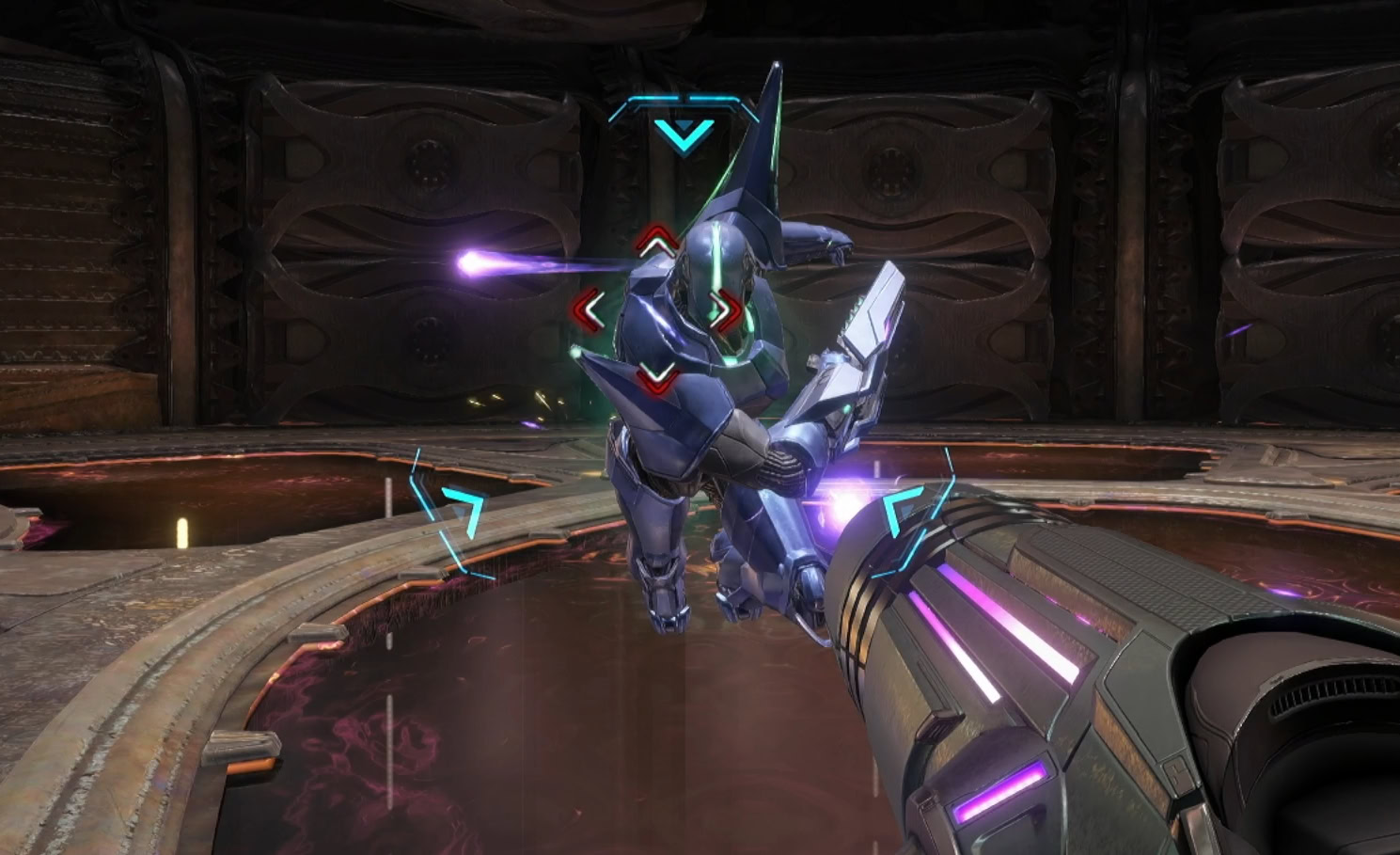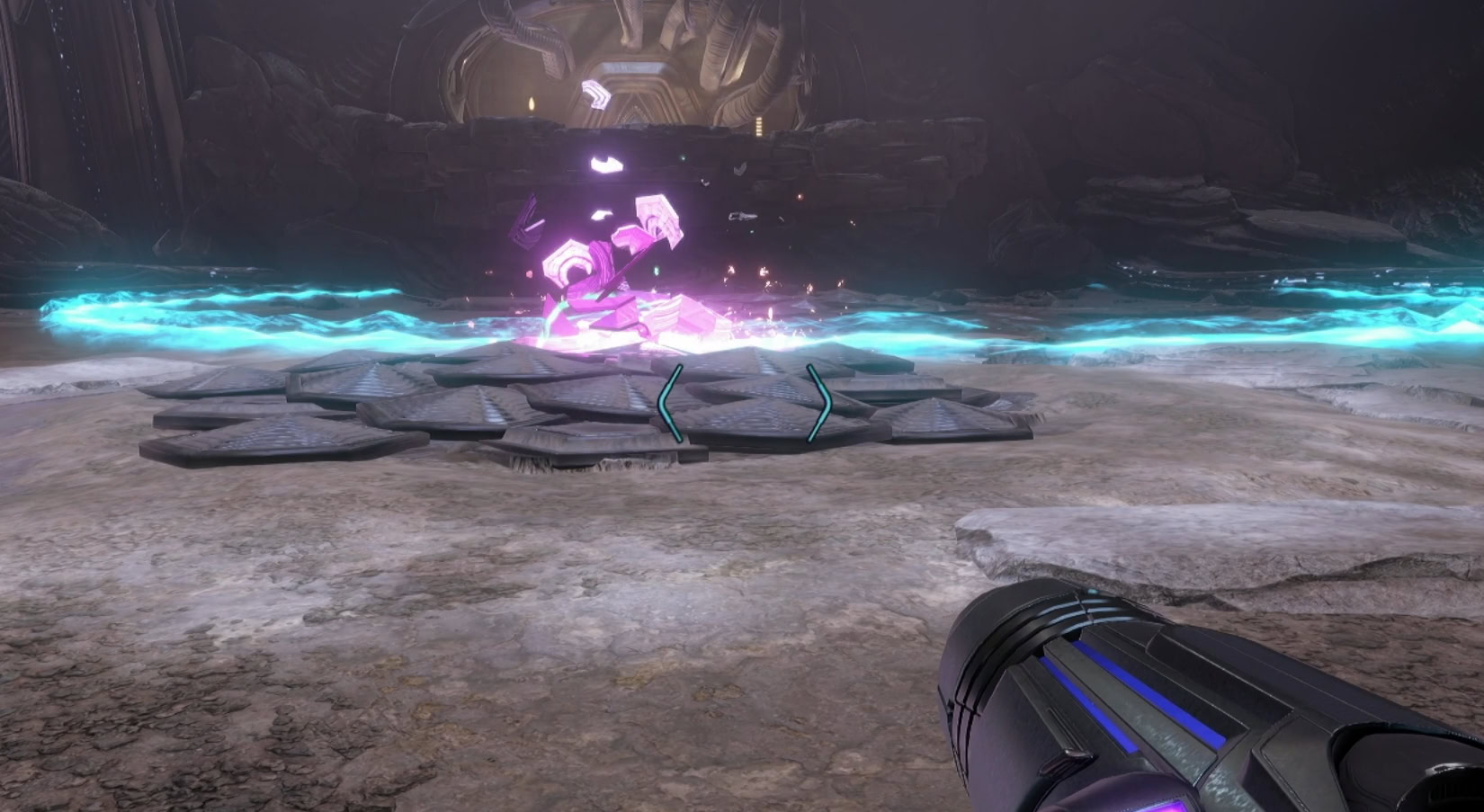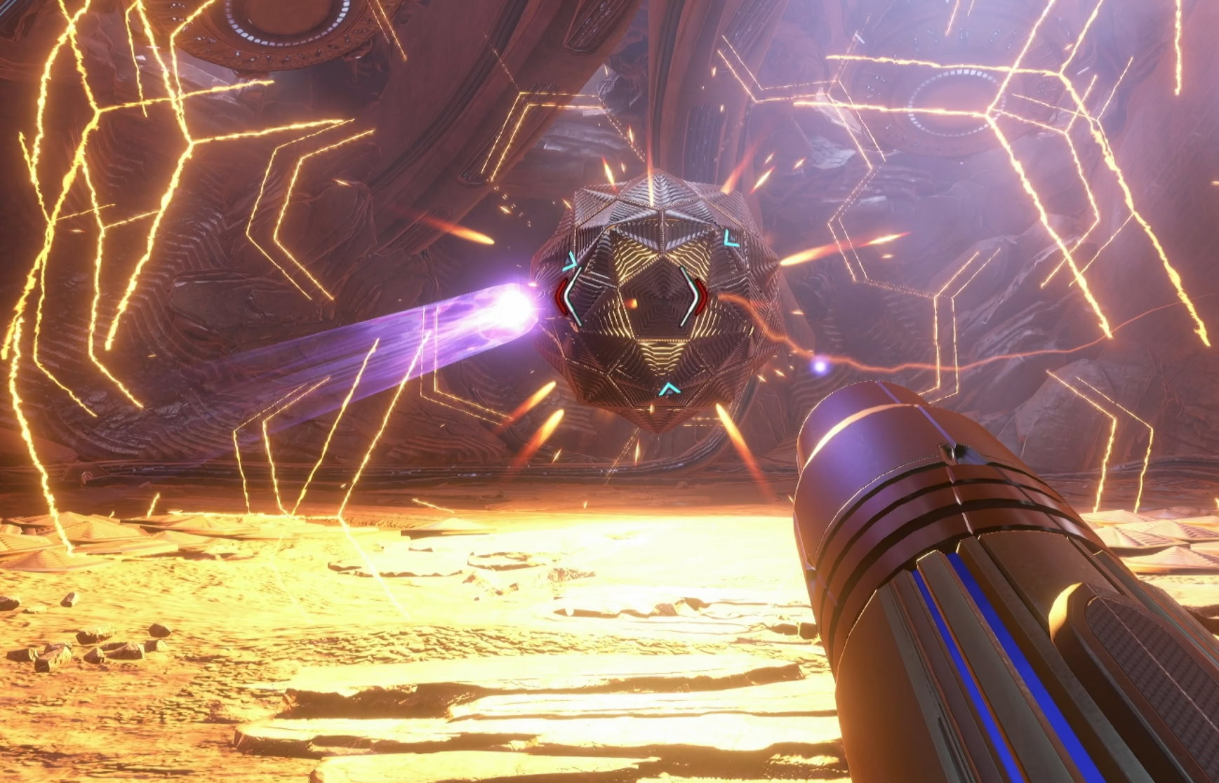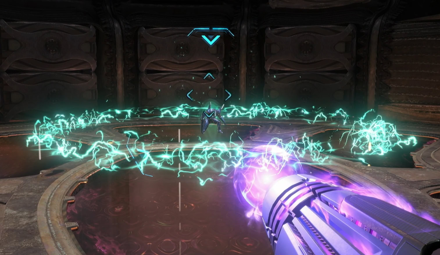 You’ll need to expose the organic core by destroying the panels that are currently lit up. Charge Shots can take out multiple panels, but they’ll also pull in the energy orbs toward you.