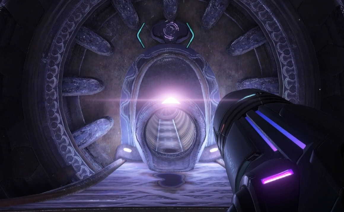 With its spheres down, its shield goes with it. Fire at it and repeat this process until it’s defeated. Go through the tunnel and back into the Archives.