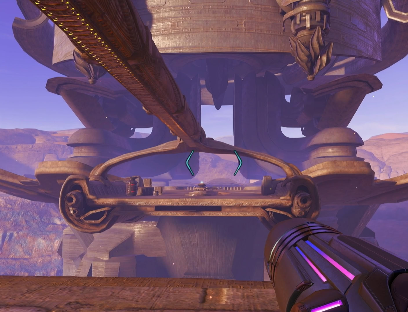 Repeat this process one more time, going to another alcove for safety. When the elevators ascend, only jump onto one platform ahead then look to your right ford the door that leads to the elevator.
