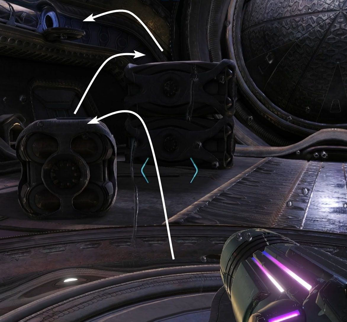 Go down the elevator to Processing and defeat the Psy-Bot Warriors. Take the next elevator down to the Storage, making sure to not stand under the crates while they’re magnetized to the ceiling.