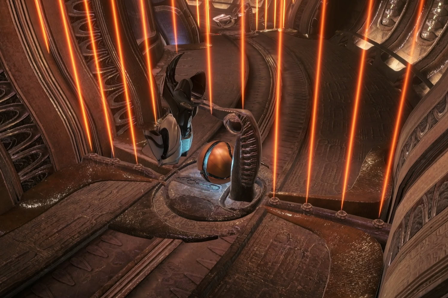 When you reach the Showroom, interact with the console in front of the bike. A cutscene will start and you’ll get your obligatory new suit that caters to this Prime’s gimmick, the Vi-O-La Neuro Bike!
