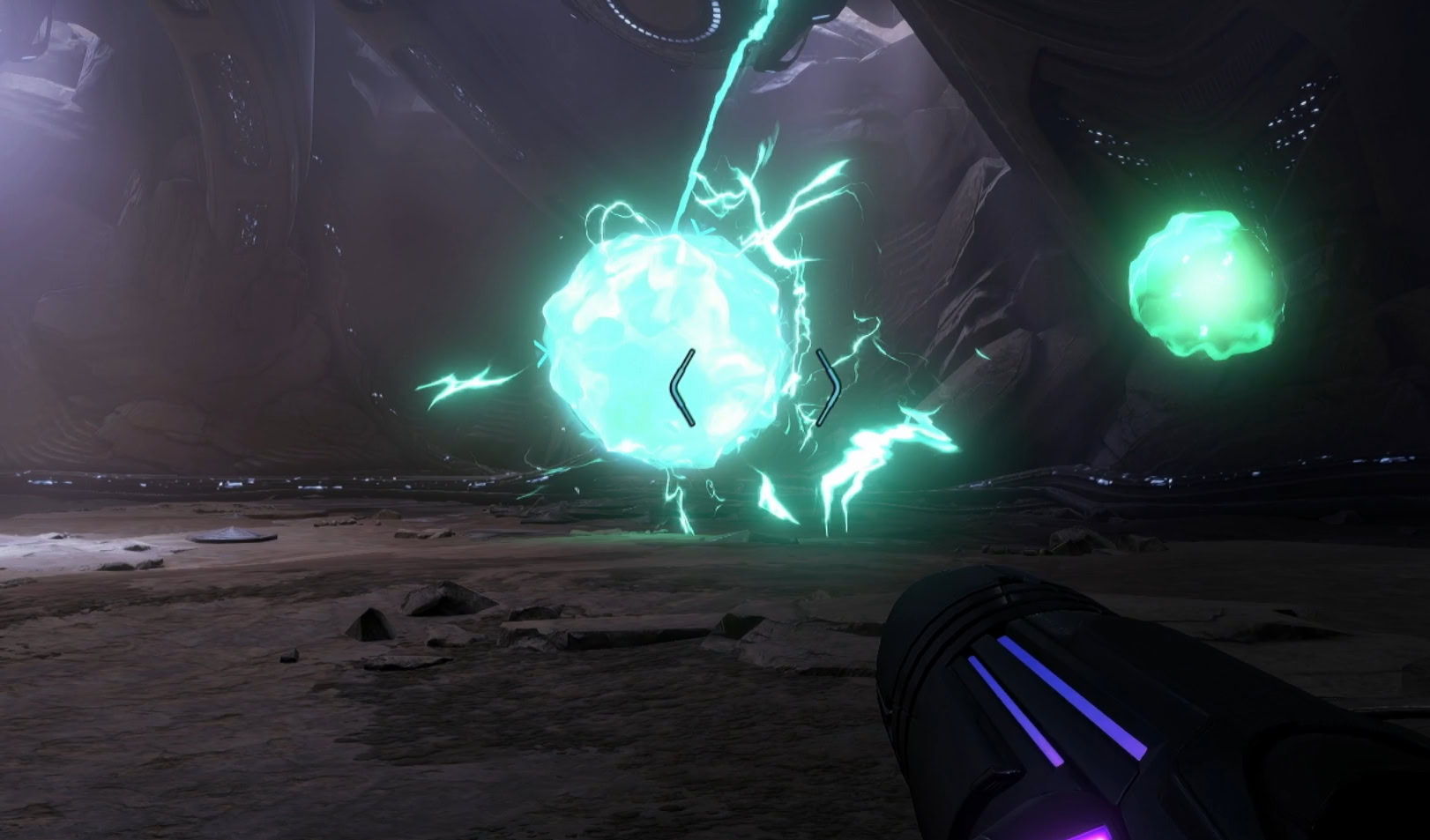 Be mindful of your footing as you fight or you might fall off the ledge. You’ll respawn as if nothing happened, it’s just annoying to deal with. When enough mini-drones have been cleared, use the Control Beam to take out the three energy spheres.