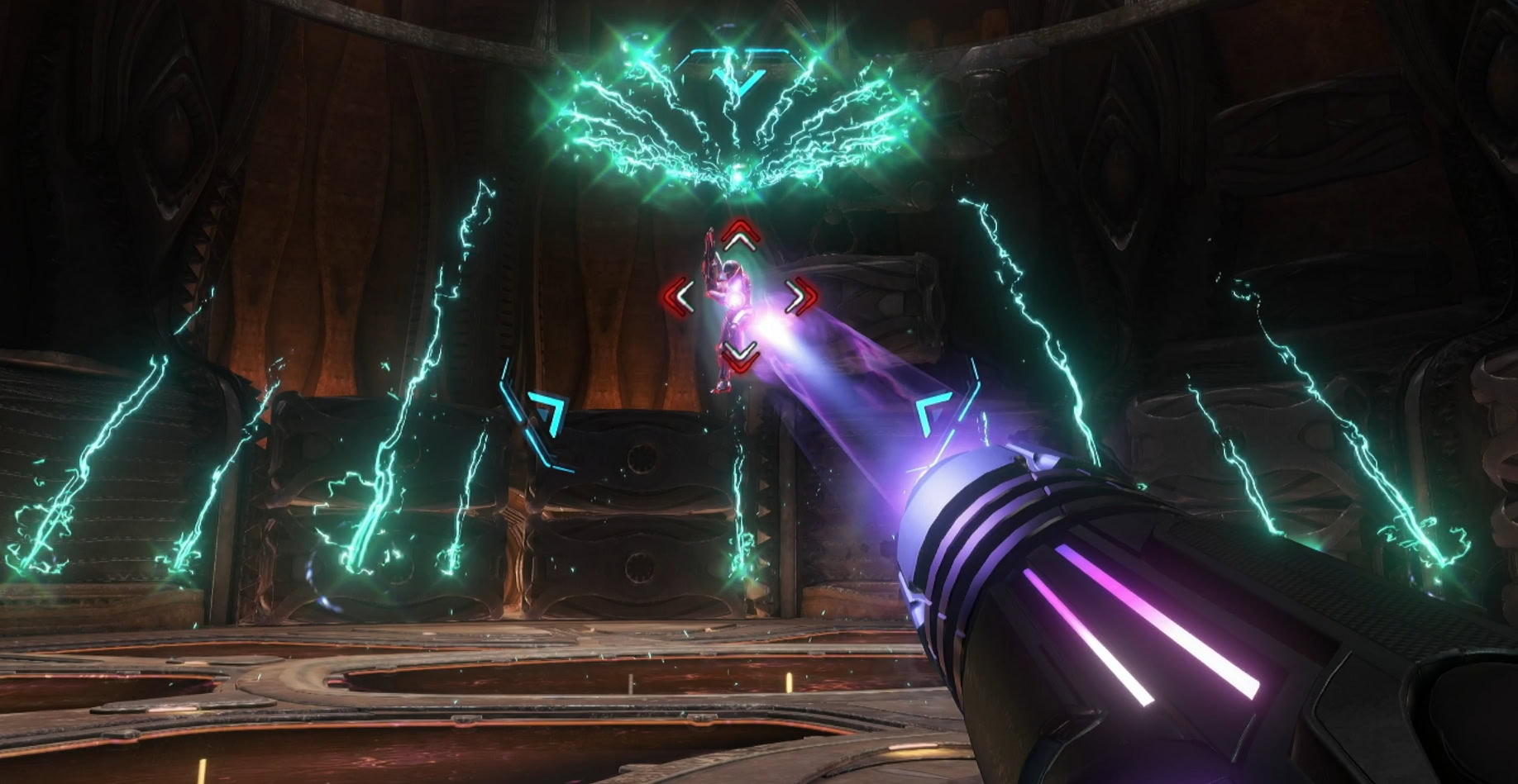 With the Maintenance Tanks destroyed, the Psy-bot will teleport to throw you off, shooting X-shaped beams at you or teleporting in for a melee strike. Don’t stop moving and dash away when it teleports on top of you. Get shots in wherever you can until it’s down.
