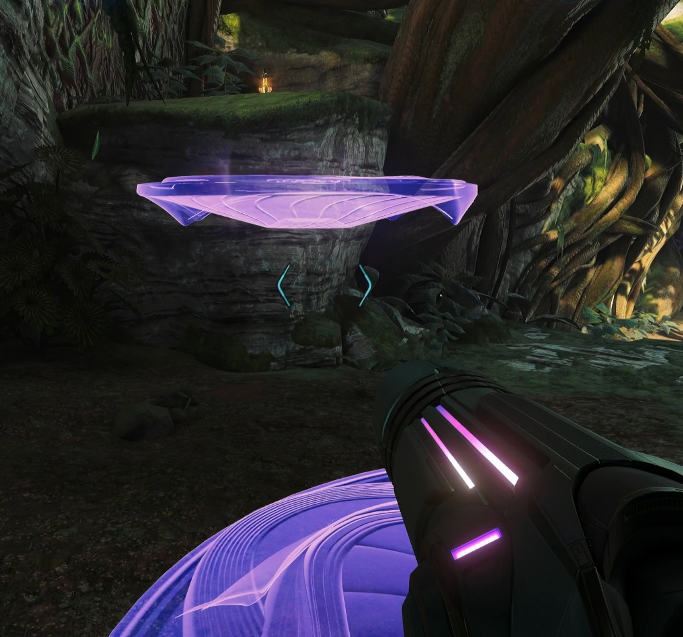 Such areas that require double jumps are often Psychic Platforms you’ll find. If you see a floating purple energy in the air, scan it with your Psychic Visor. Once these platforms manifest, you’ll be able to stand on them as if they’re physical platforms.