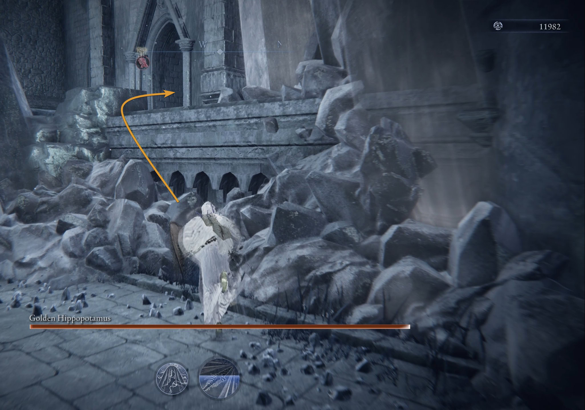 Unless you manage to get the circle to close there, I’d say you probably need to run past a bunch of enemies to get there in time, and that’s assuming you have backup. There was a Golden Hippopotamus in the courtyard and several Fire Knights that I skipped.