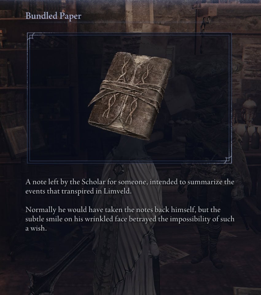 It’s treacherous to navigate the place where Scholar is, and it helps a bunch if you’ve done his Chapter 5 Remembrance quest because you’ll find him in the same spot.