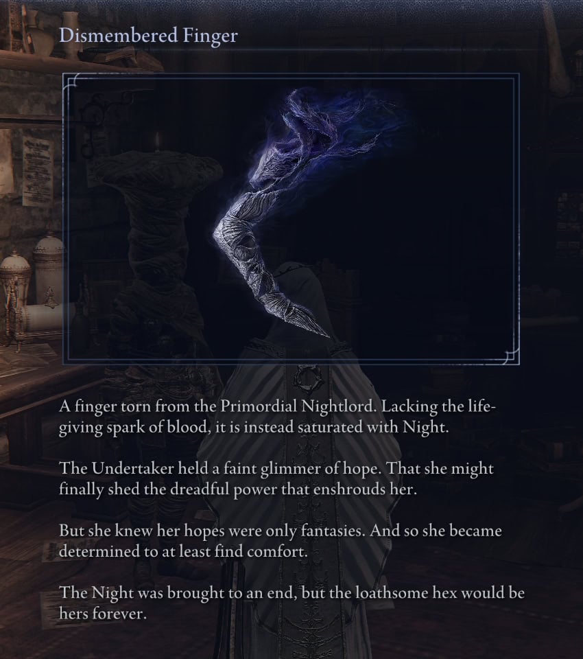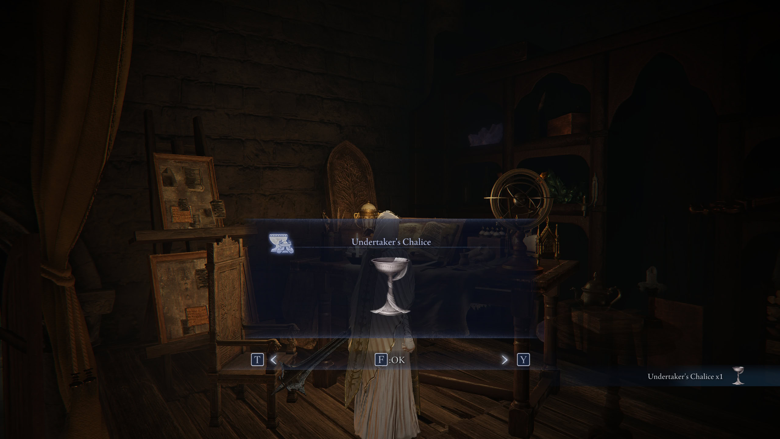 While both of those are Key Items, you do get the Undertaker’s Chalice as an actual usable reward.