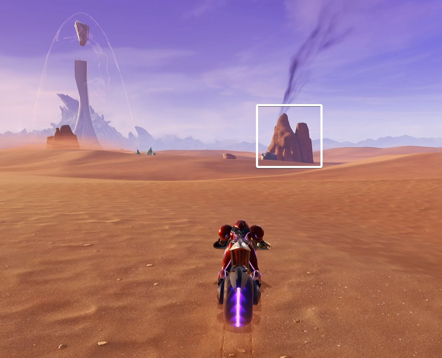 When you leave the Flare Pool entrance, you’ll see some smoke in the distance. Ride towards it to find Tokabi camping out here. He’ll talk about his family’s history then give you a Teleporter Chip.