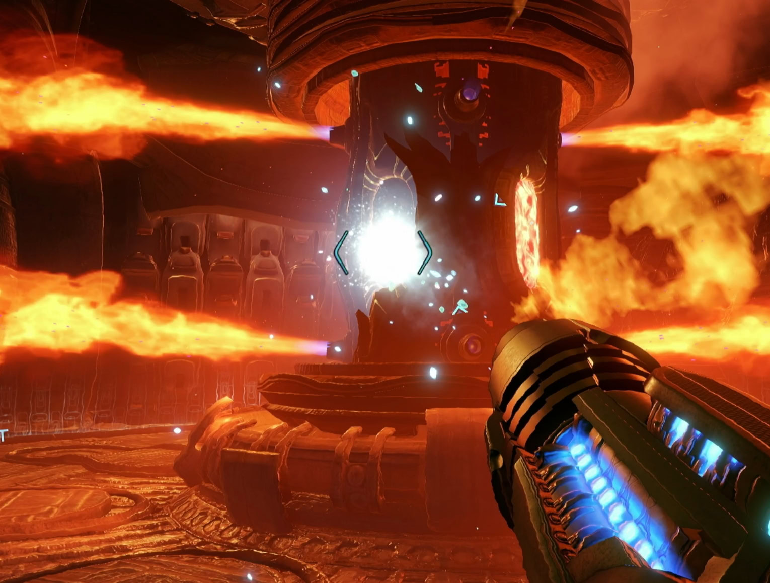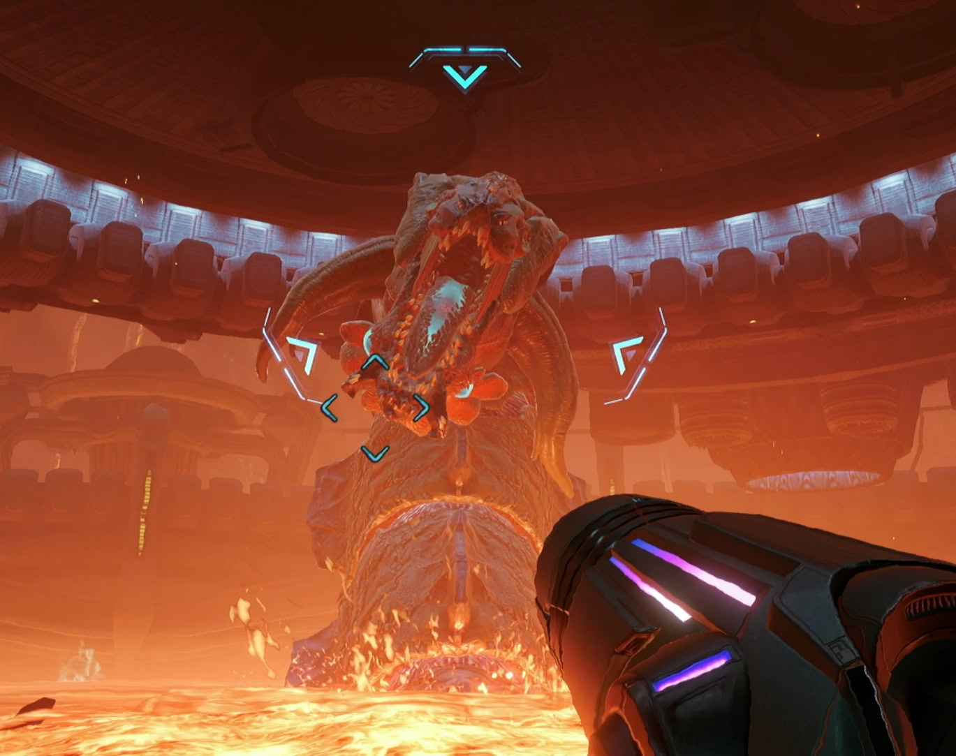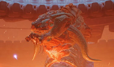 When all of his face growths are destroyed, Phenoros will be stunned with his mouth wide open. Get in as many shots as you can while he’s stunned. When he’s no longer stunned, he’ll return to the lava and pop out with more growths.