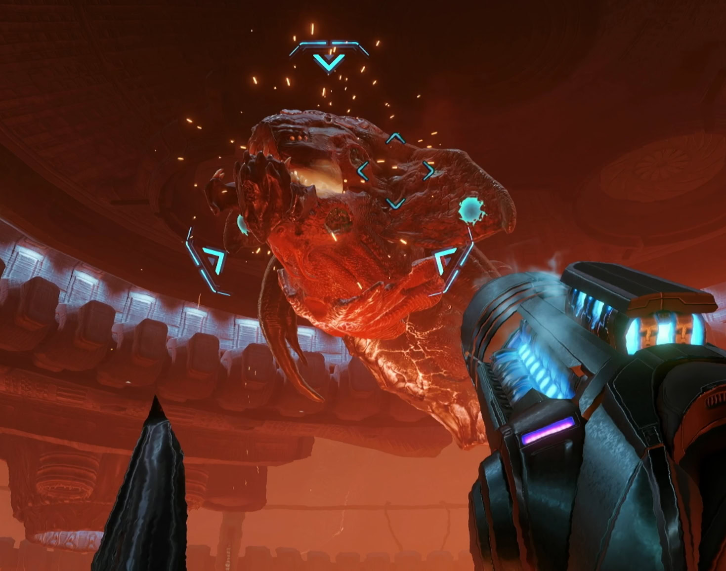 Boost to the other side of the room where Phenoros slithered to. If you need more boosts, destroy the Blow Hoppers floating around. They’ll drop Energy and recharge your boost.