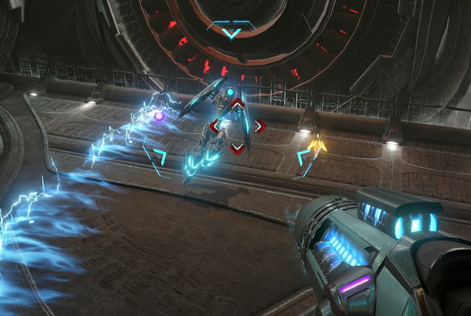 Once defeated, take the south door and destroy the turret in the middle of the hall. Use the save station in the room ahead and return to the Entry Bay. Do note that this turret will eventually respawn after getting a certain distance away from the area.