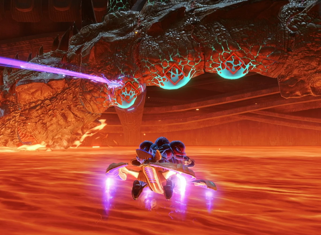 When you enter Flare Pool, use the Ice Shot on the wall of lava blocking your path. When it’s solidified, blow it up with a missile and use the Spinner to turn off the lava flow.