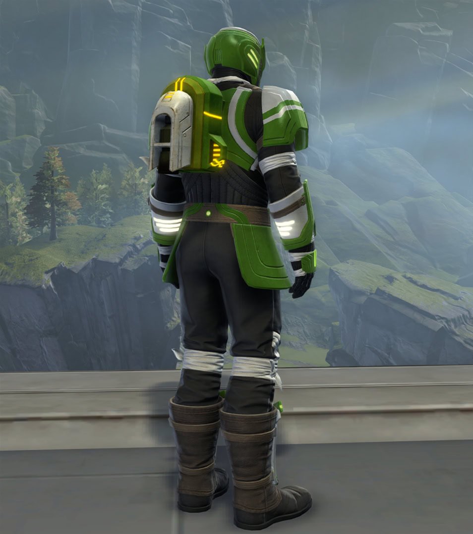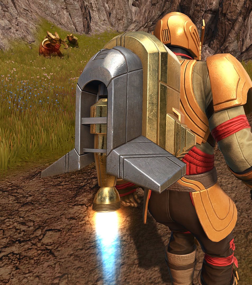 All sets have a built-in version of the Outer Rim Runner Jetpack mount, though the mount is much larger than the one that appears on the armor.