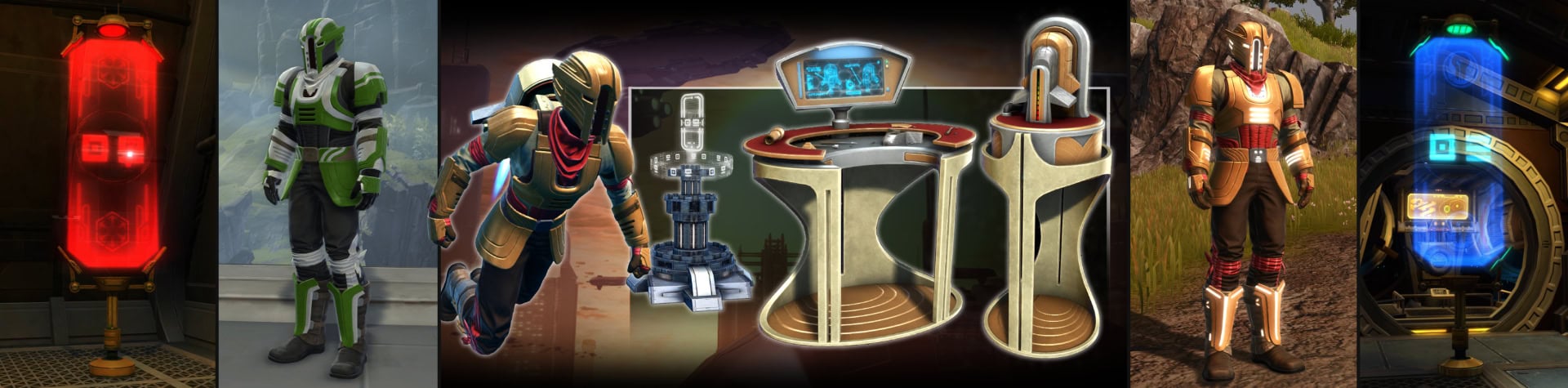 These armor sets are inspired by outlaws in the Outer Rim. The overall style is influence by the Crimson Dawn gang featured in Star Wars: Outlaws and Solo: A Star Wars Story.