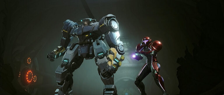 Keep shooting his pale parts, shoot his weakspot, and he’ll go onto the ground. It might be tempting to use your new Super Missiles for this fight, but a stream of standard Psychic Beams will yield a faster rate of damage.