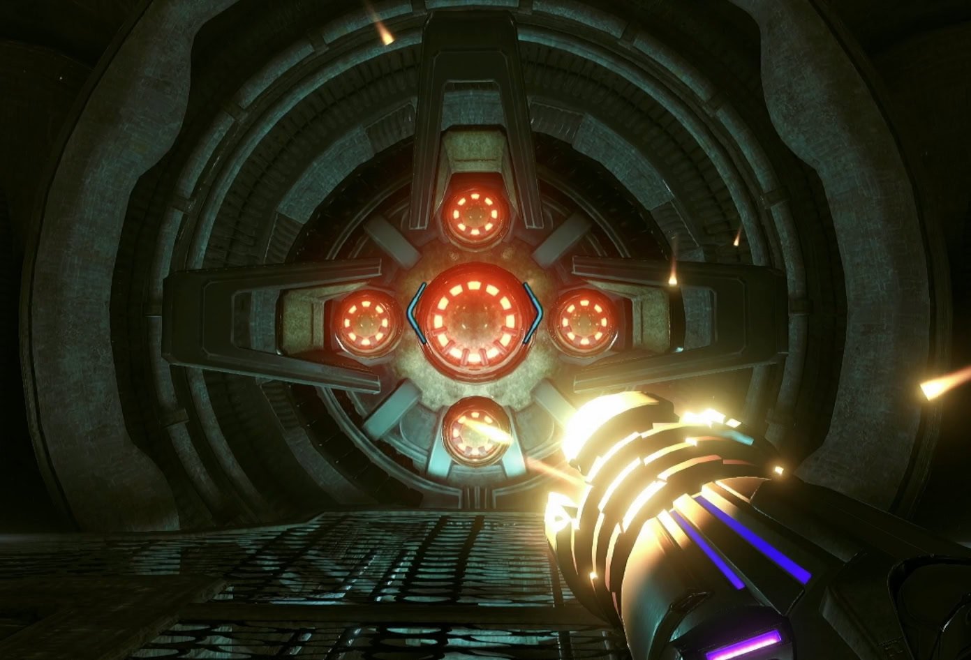 Roll into the slot and use the Boost Ball to release a clamp. Return to the spider tracks and follow them to the spinner on the other side. Release the other clamp to drop the cage.