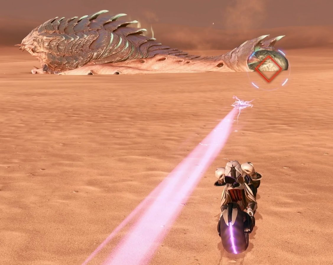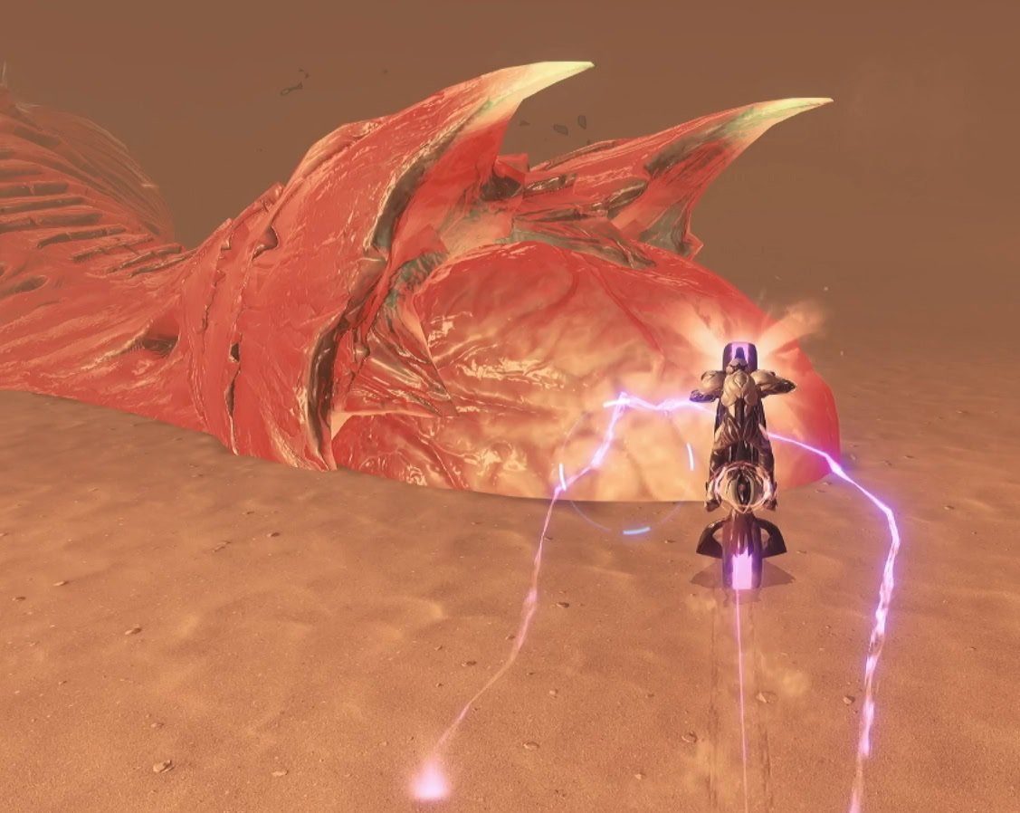 You’ll need to fight this boss while on Vi-O-La. Lock onto its tale with the Vi-O-La Projectile to temporarily stun it. This will grant you a Boost Charge, so activate your boost to ram into the tail to deal damage.