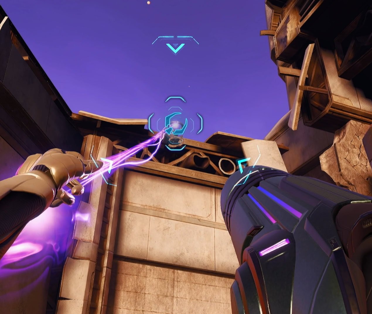 On the west side of the debris site is a mech forearm gripping a steel beam. Shoot it with the Thunder Shot to loosen its grip and teleport it to Base Camp.
