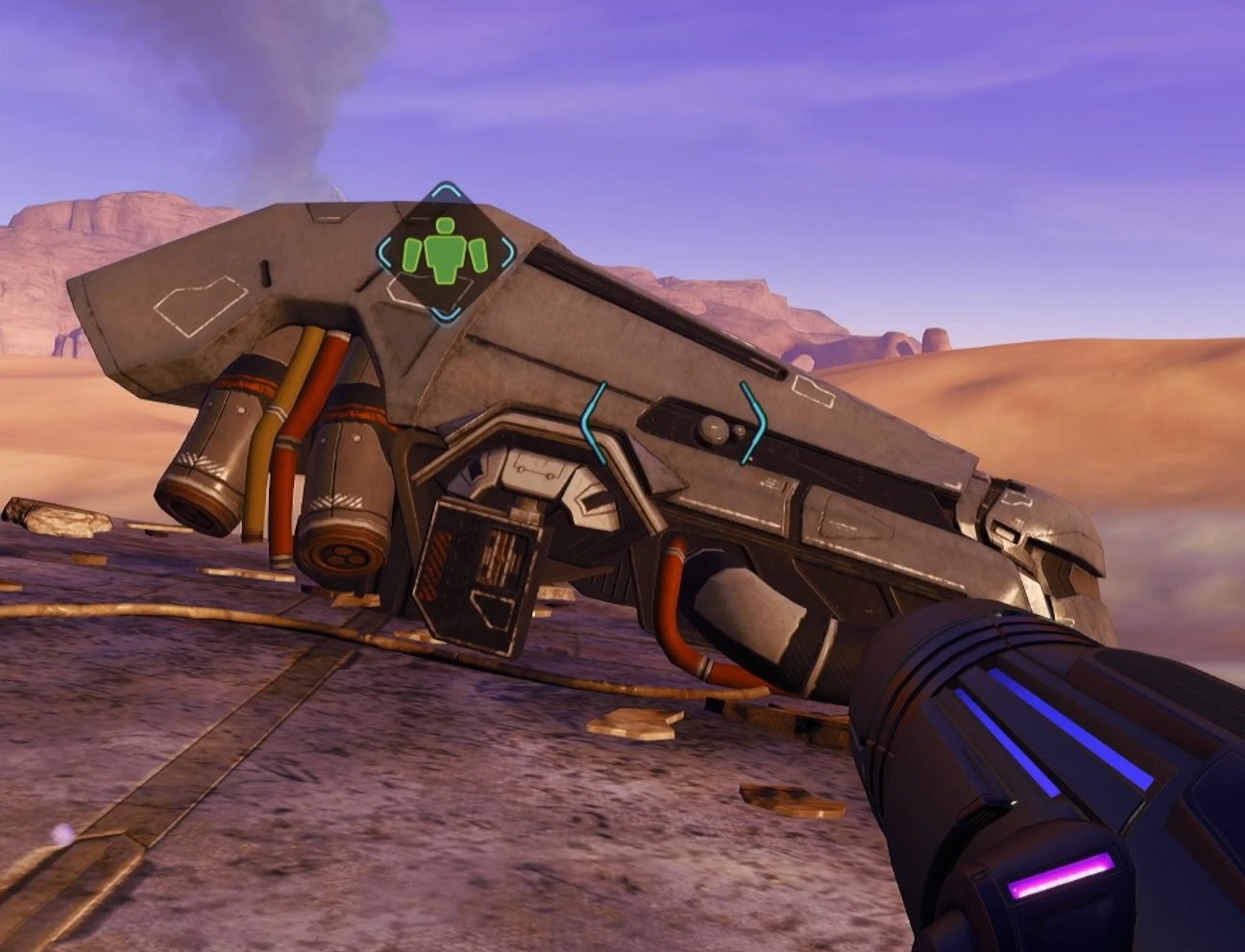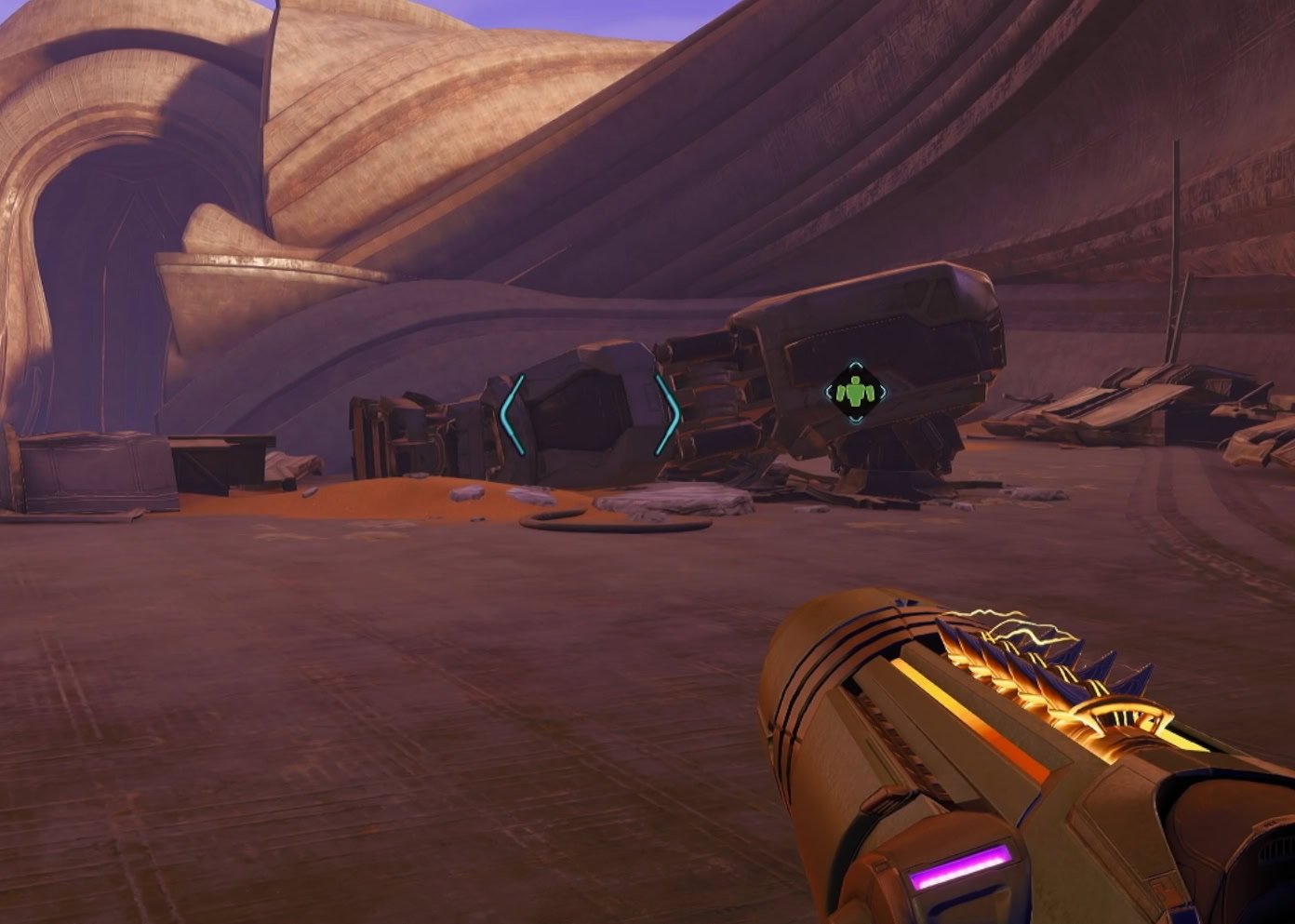 When you arrive at the Fury Green Lamorn Temple for the first time, you’ll encounter a large mech suit within one of the rooms. It’s salvageable and you can search Viewros for its missing components.