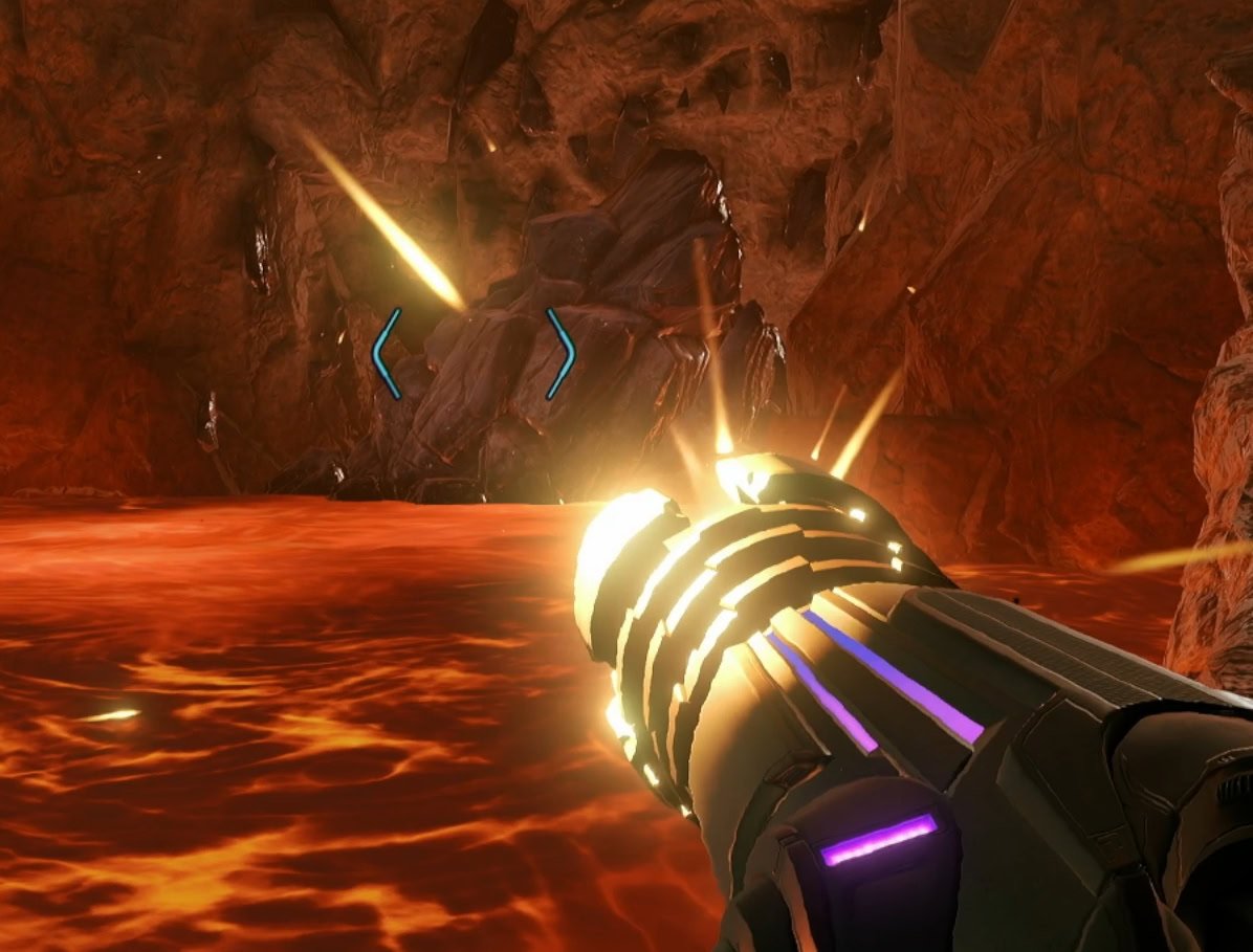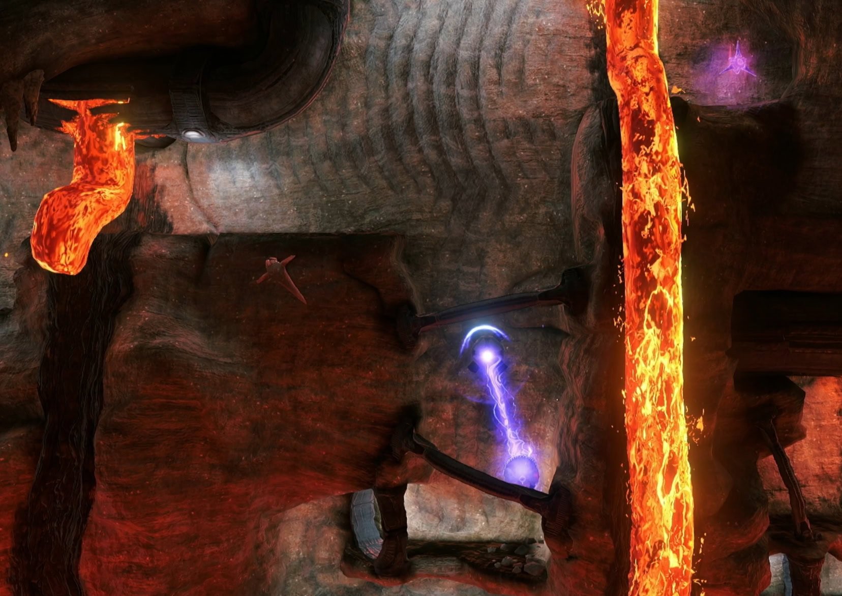 To get it, reach the other side and use the grapple nodes to access a terminal. Activate it with the Spinner to stop the lava flows, then return through the tunnels to get the Psychic Power Bomb Expansion.
