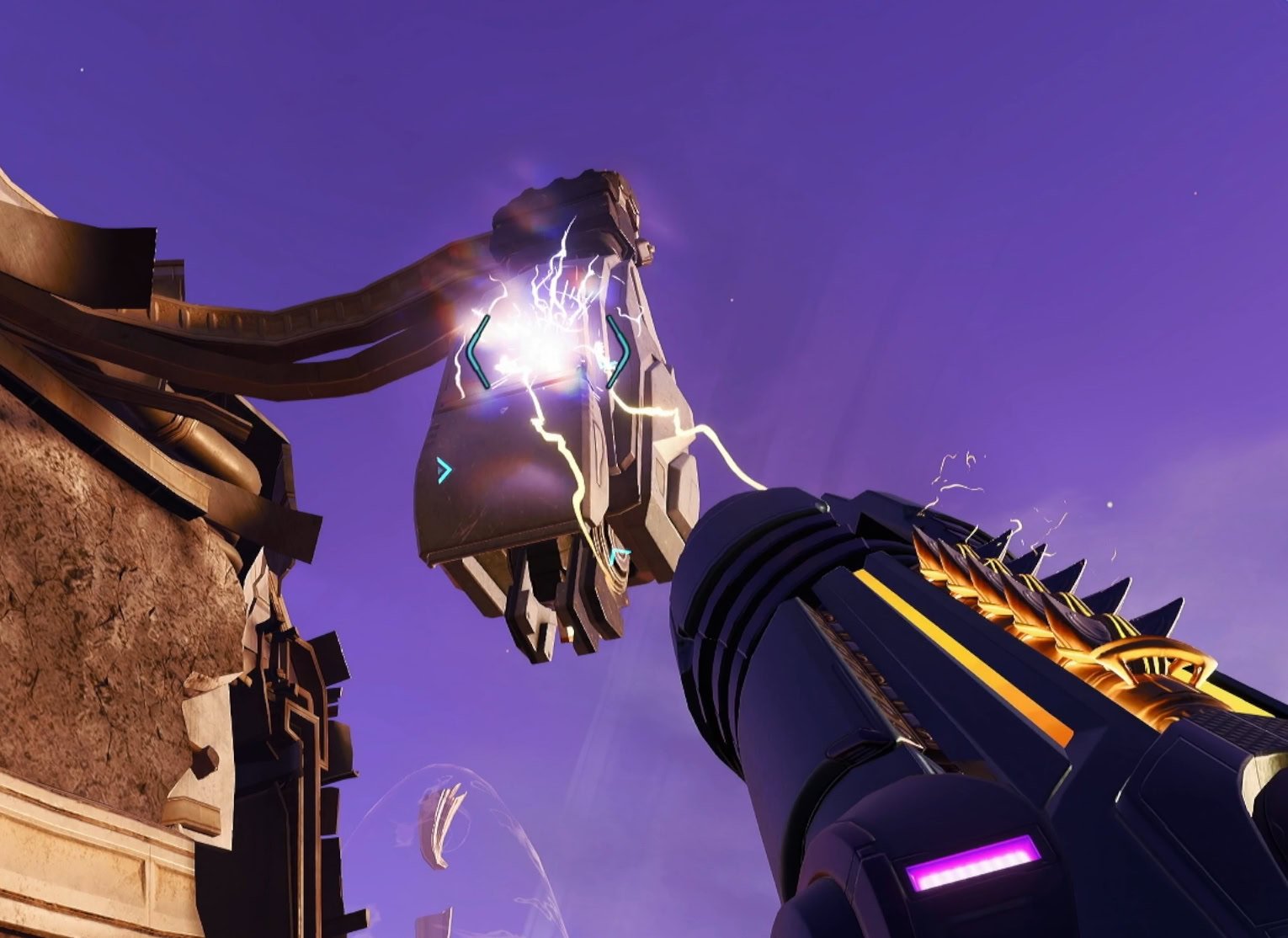Reach the Expansion Site and approach the arm to start a cutscene. Defeat the Behemoth by shooting its red eyes. Shoot its mouths with the Ice Shot to prevent it from shooting fire for a bit. When all the eyes are destroyed, you can claim the Particle Cannon.