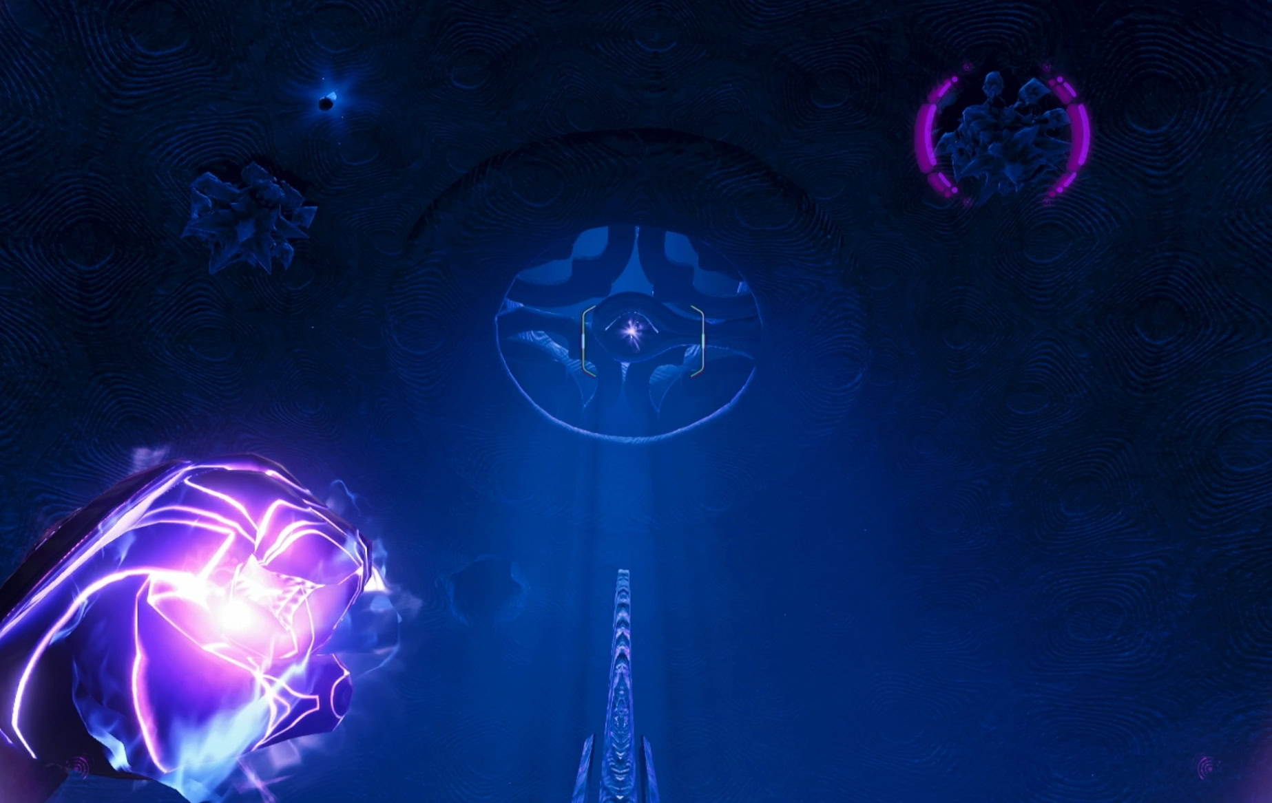 Activate the Spinner in the Falling Labyrinth Room. Pull the mote and launch it into the grate on the ceiling. This will activate a maze of psychic tracks that you’ll need to get up.