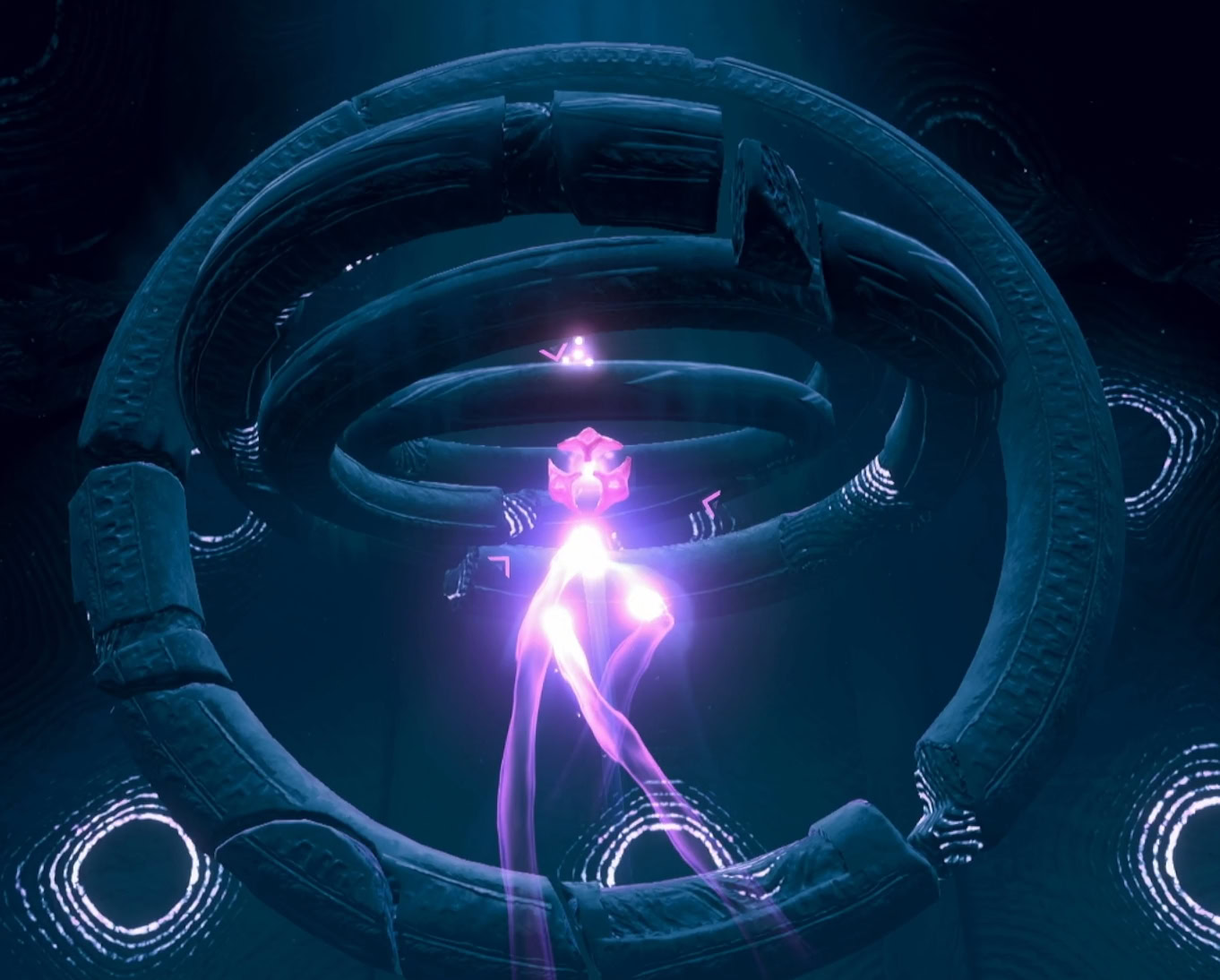 Scan the gyroscope mechanism and you’ll see a psychic switch surrounded by concentric stone rings. Use the Control Beam to get past the rings and hit the switch to turn on the elevator.