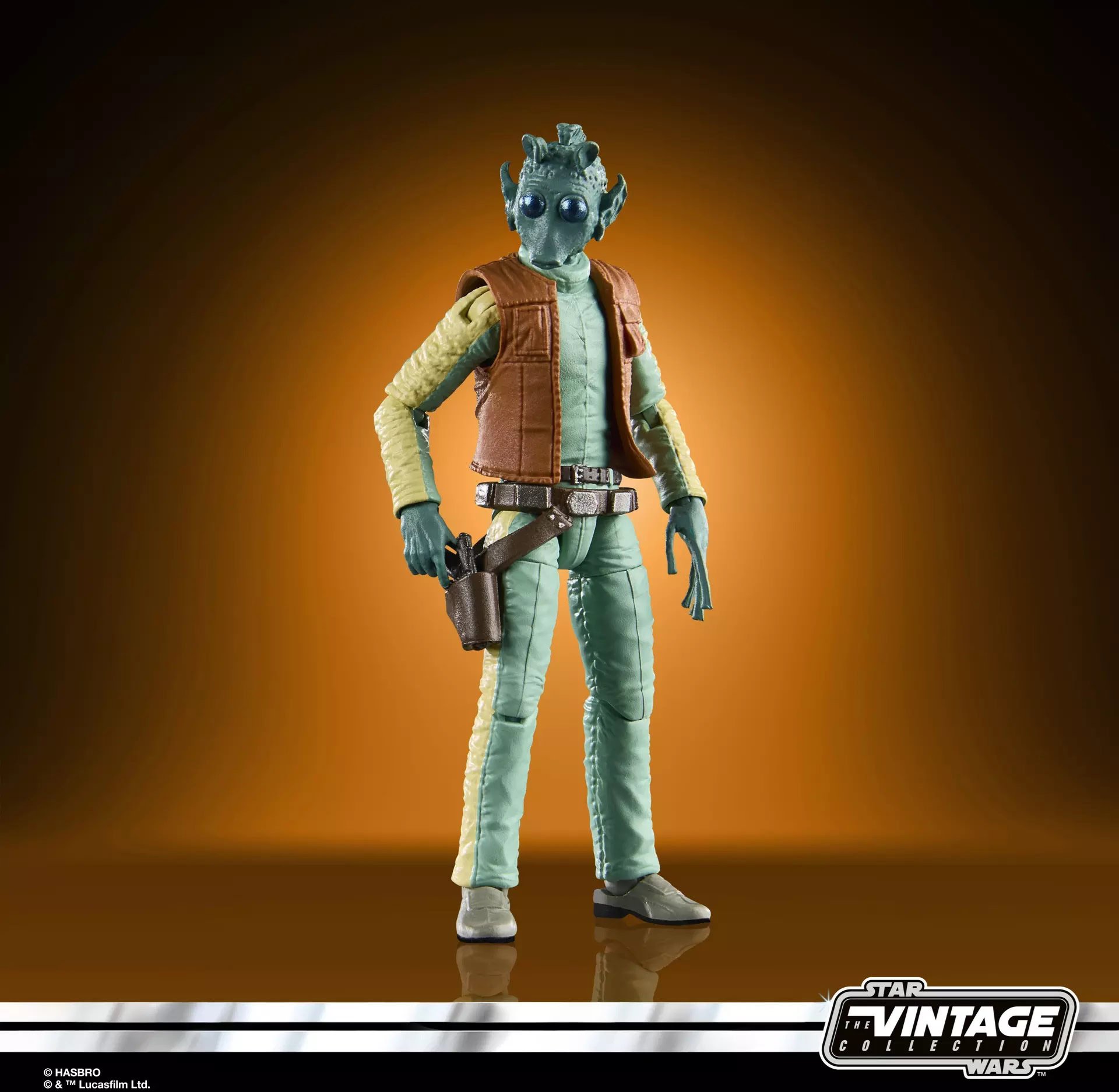 Greedo, the deadly Rodian who didn’t shoot first, comes with a blaster. Inspired by his first and only appearance in A New Hope.