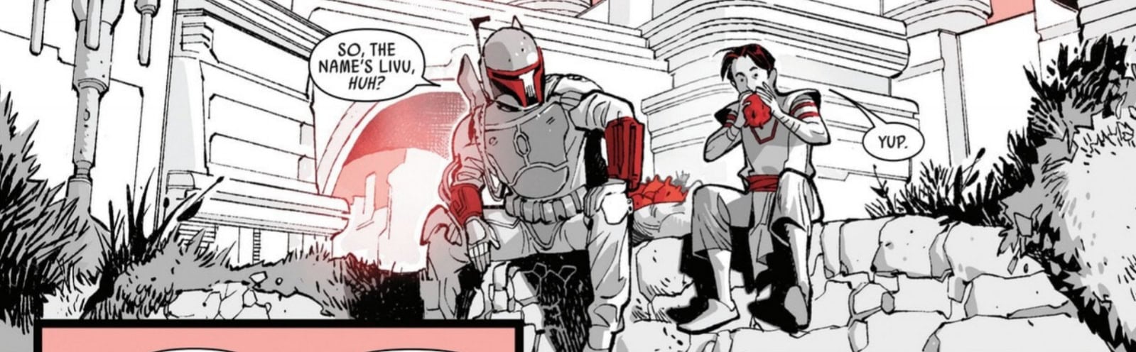He “bribes” a local boy to tell him who might be behind the murder. The kid mentions the Shadow of Bri-Phrang, but before he can continue, someone attacks them. Boba Fett locates the sniper, who is revealed to be Raslin Grace, a member of the Grace family. After a quick exchange, Grace escapes, but not without making clear that she is also after the murderer.