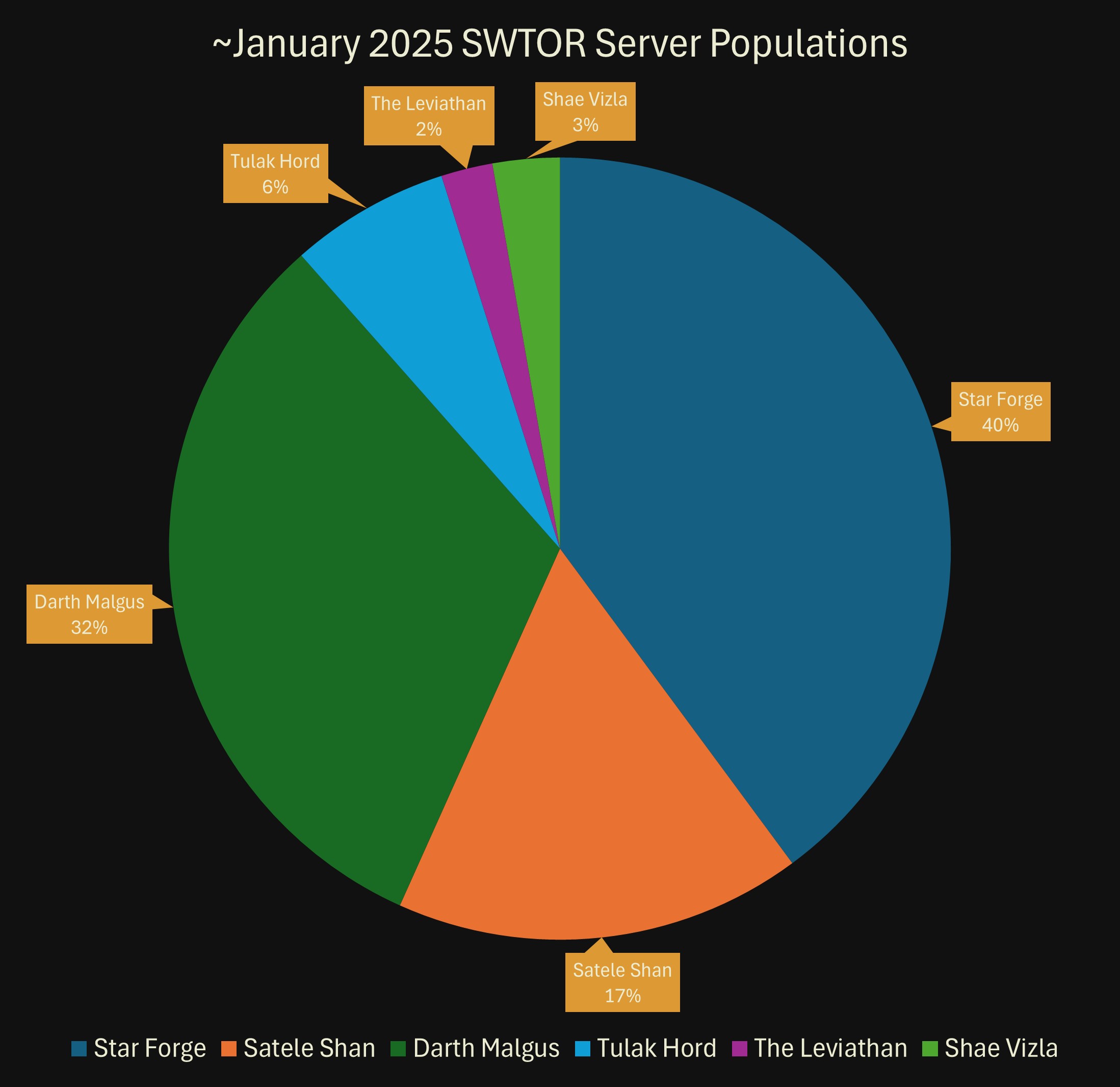 It’s clear that Star Forge and Darth Malgus have the lion’s share of the players, with Star Forge having triple the number of players as Satele Shan.