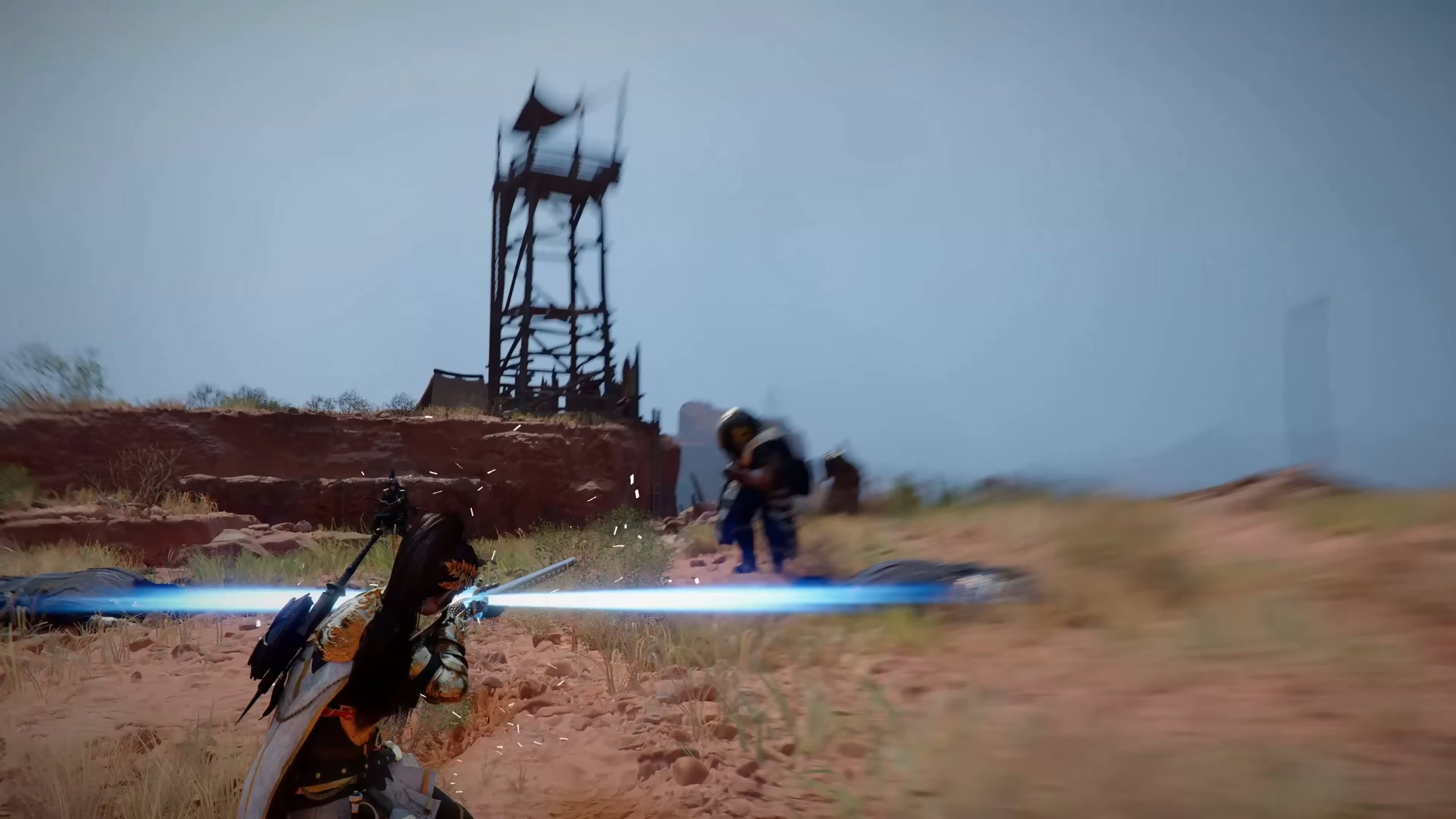 The Spear is shown to be more focused on a combination of quick, longer-range melee strikes and parrying incoming attacks to create an advantage.