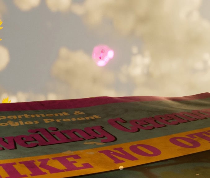 Just as we get out of the small Tunnel, we’ll see our first Point of Interest, the Ceremony Pamphlet. All Points of Interest (POIs) will get marked on our map automatically as we find them, though some can be picky about what angle we look at them from.