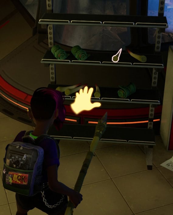 As we head inside the Outpost, we’ll be able to pick up our first Omni-Tool Upgrade, the Tier 1 Omni-Axe, from the wall to the right.
