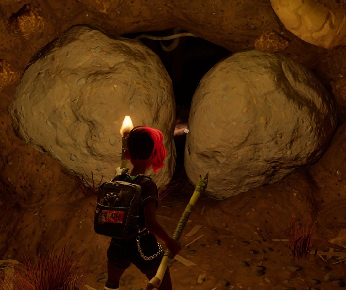 We’ll finally reach the cave we need to enter, but there are a few things we’ll want to grab from the nearby grass first.