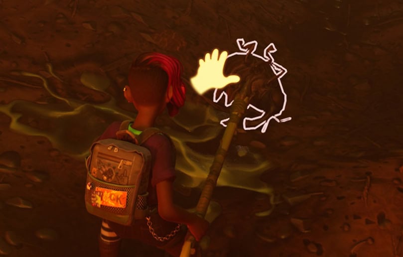 As we enter this very small anthill, to our immediate right are two Pebbles blocking the way forward. Use the Omni-Hammer to clear them out and proceed deeper.