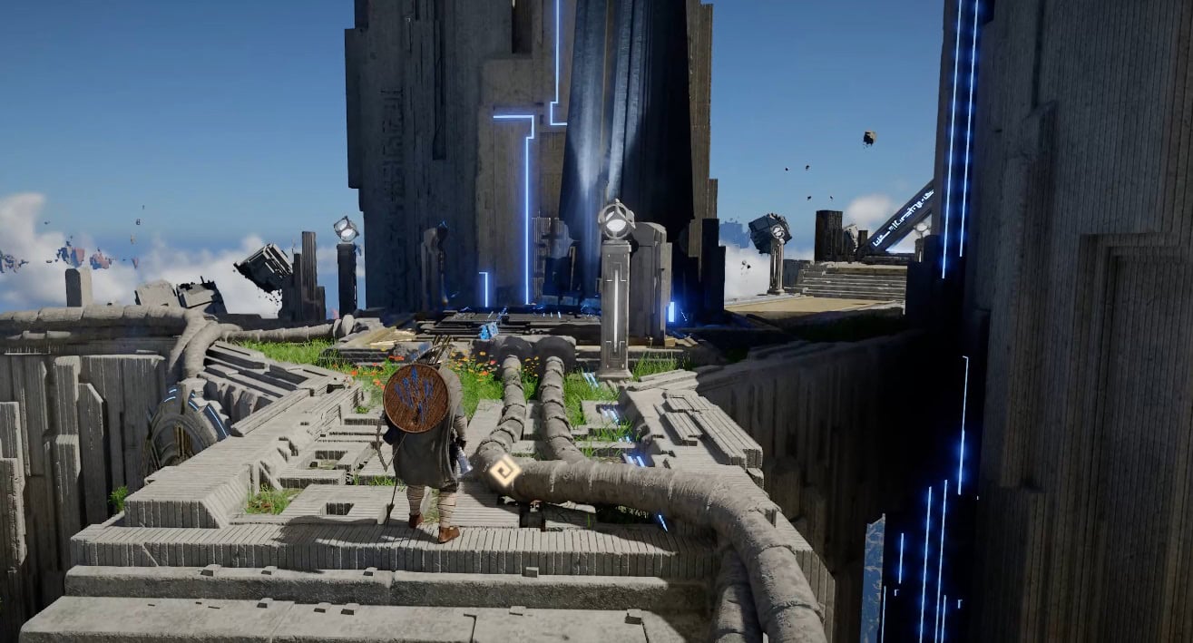 Before you reach the puzzle, there is a short platforming segment. You can use Precise Jump in combination with normal jump to get through that linear part. This includes the following objectives, which we will skip and focus on the actual puzzle at the end: