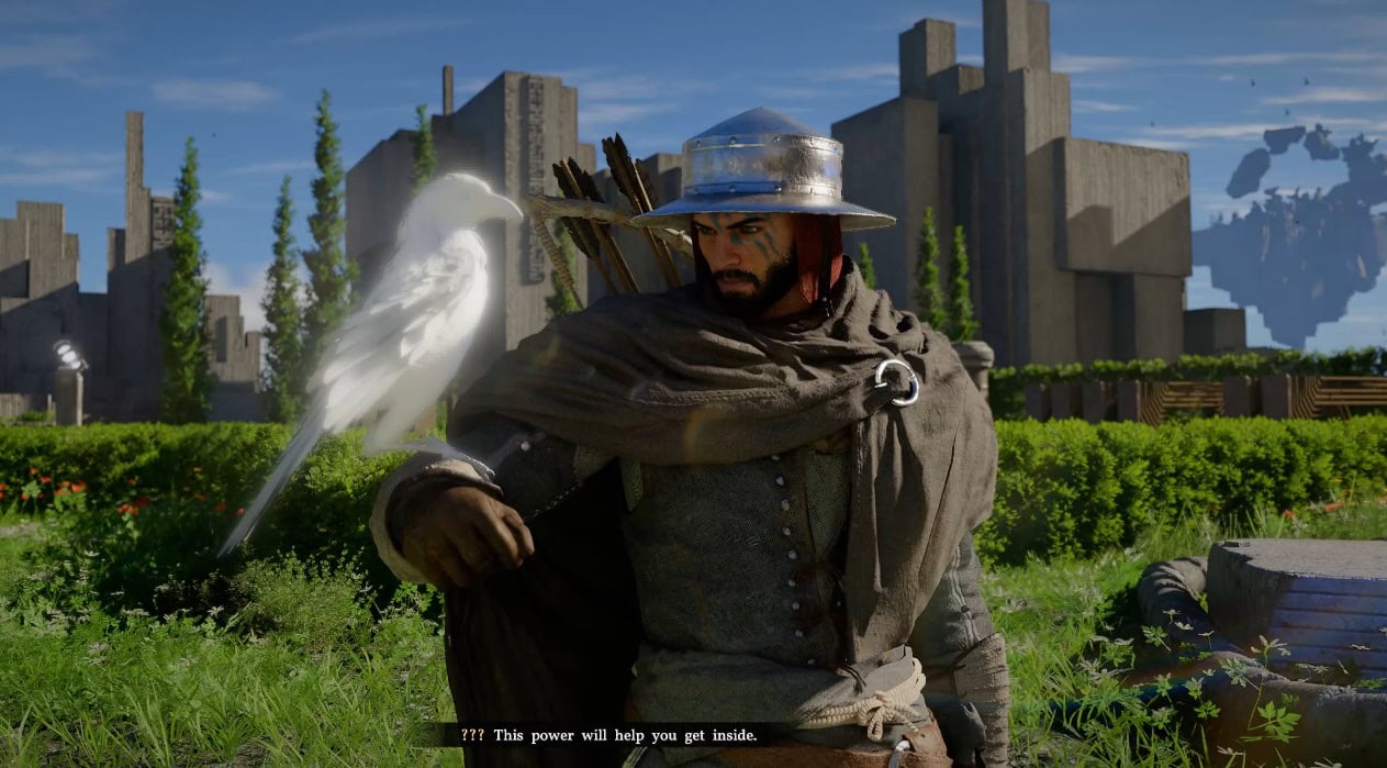 Continue walking to the massive building ahead of you. As you come close, a strange talking white crow will give you the Axiom Force ability, which lets you throw some type of long arm/hand to grab and move objects.