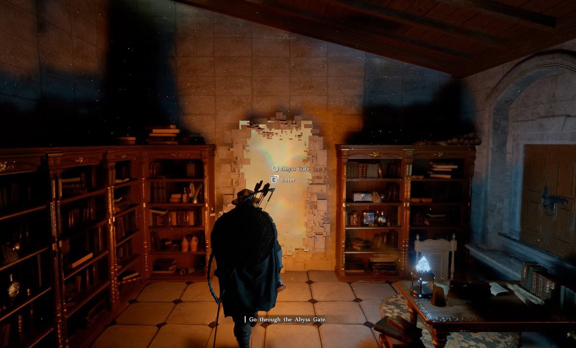 An Abyss Gate appears on the wall. It will transport you to a location many meters above in the sky.