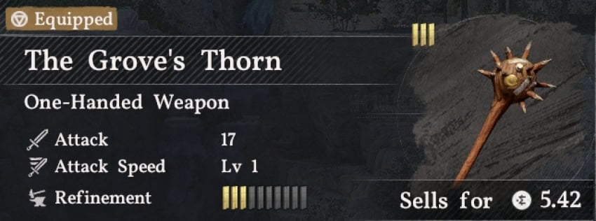 For your efforts, you’ll get a new weapon and two Abyss Gears. The weapon is a morning star called The Grove’s Thorn. This will refresh your Spirit meter when you hit enemies. Gee, this would have been very useful earlier!