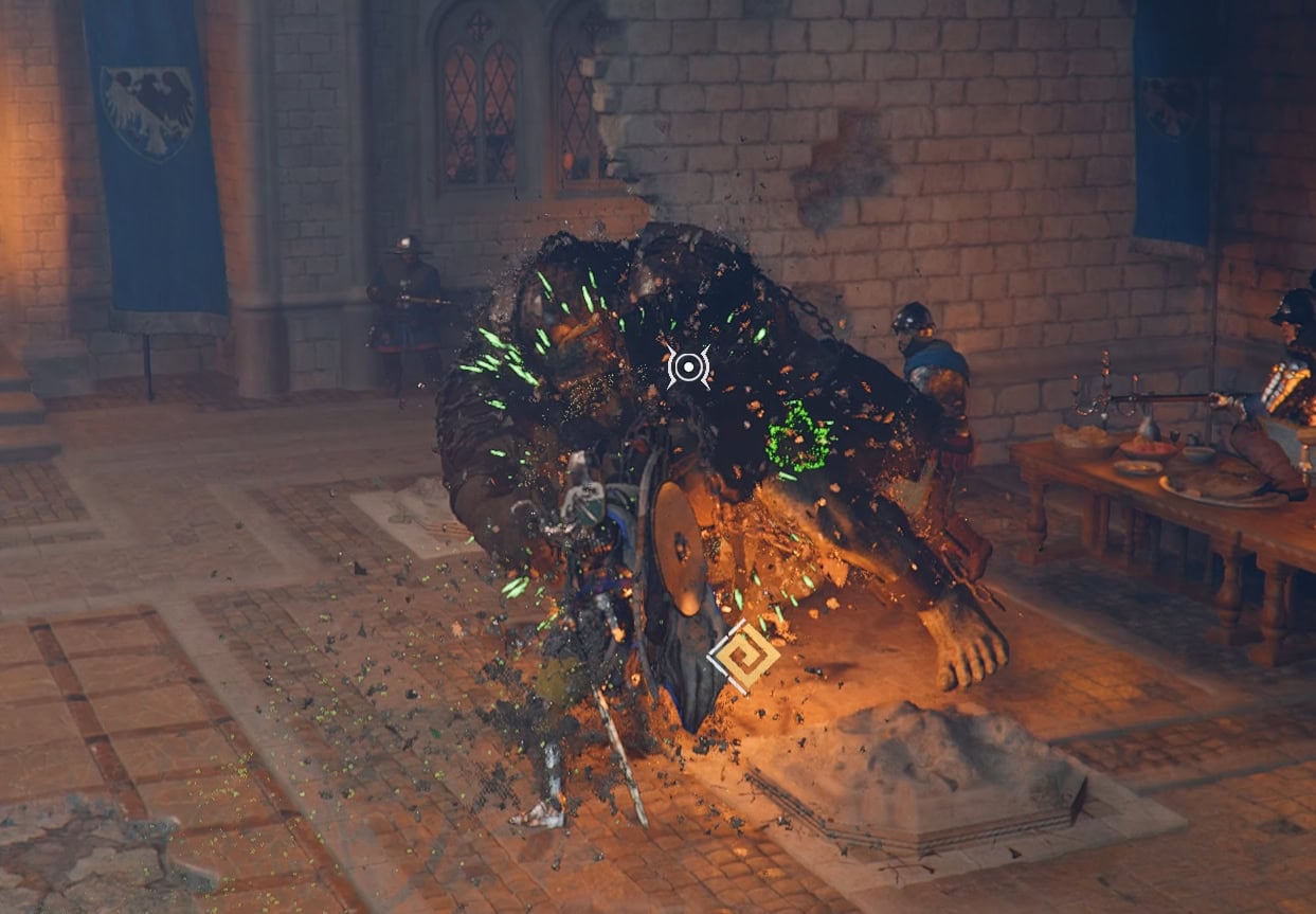 After wrangling a horse in Unwelcomed Guests, you’ll need to attend the banquet for the quest Demenissian Delegation. Pack a lot of food before talking to Marquis Serkis. The moment you talk to him, you’ll start a cutscene that leads into the boss fight.
