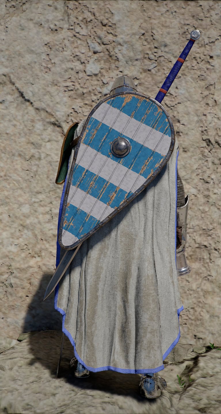 Pictured with matching Kite Shield and Rhett’s Longsword, obtainable from the same vendor.