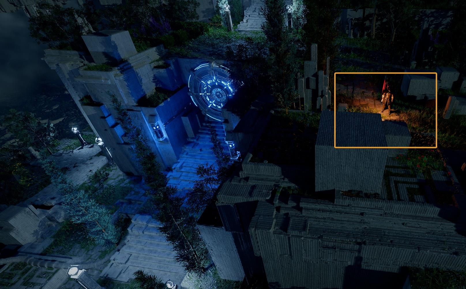 Like all sections of the Abyss, there’s yet another Skybridge just beyond here that will connect to the Courtyard of Precision, the next puzzle in this long chain.
